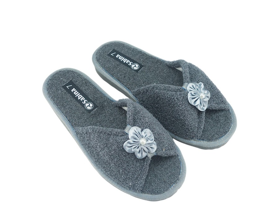 Γυναικείες υφασμάτινες παντόφλες ανοιχτές μπροστά εξαιρετικής ποιότητας. Διαθέτουν μαλακό πατάκι και αντιολισθητική σόλα. Είναι από πετσετέ ύφασμα, ελαστικό και φιλικό προς το δέρμα. Ελληνικής κατασκευής.