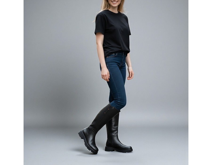 Γυναικείες μπότες από την Refresh. Κατασκευασμένο από υλικό που μιμείται το δέρμα. Κλείσιμο με φερμουάρ στο πλάι. Φαρδύ τακούνι 5 cm με αντιολισθητική σόλα από καουτσούκ.