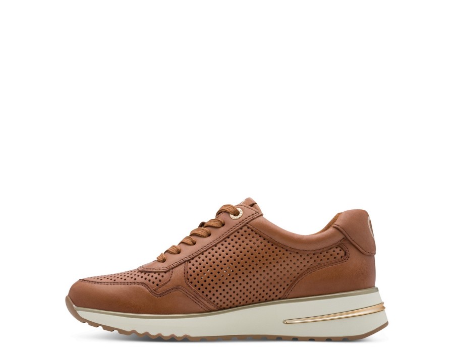 Sneaker δερμάτινο Marco Tozzi με κορδόνι στο κέντρο, ενισχυμένο μαξιλαράκι στη φτέρνα, ελαφριά, αντιολισθητική σφήνα σόλα 4,5 εκ. και ενισχυμένος δερμάτινος πάτος για άνετο πάτημα.