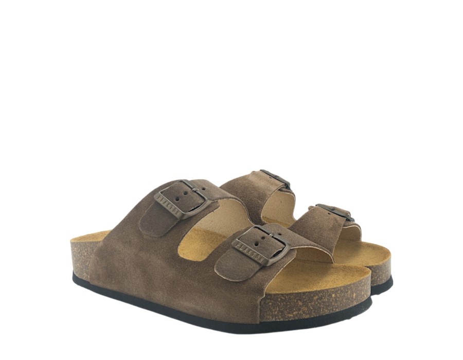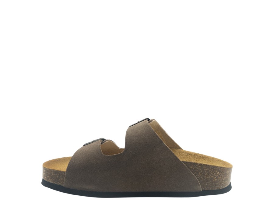 Γυναικείο σανδάλι σε καφέ χρώμα, είναι κατασκευασμένο από δέρμα suede και συνθετικό δέρμα που το καθιστά πολύ άνετο και πολύ μαλακό. Το ύψος του τακουνιού είναι 2,5 εκ.
