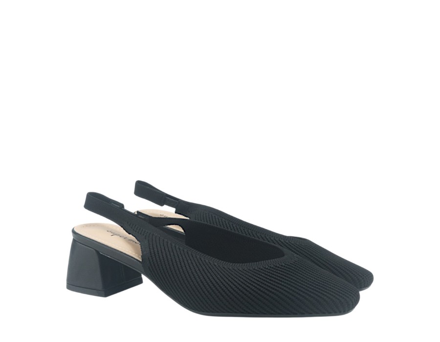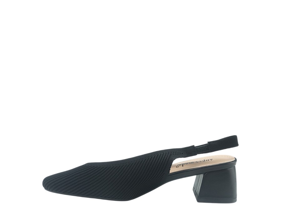 Γυναικείo πέδιλο σε μαύρο χρώμα της εταιρείας SUPER MODE, κατασκευασμένο από συνθετικό δέρμα, με τακούνι ύψους 5,5 εκατοστών