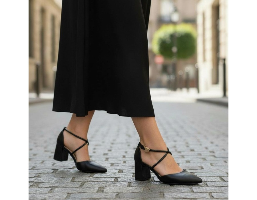 Γυναικείες γόβες για πραγματικά κομψές εμφανίσεις στην εργασία ή τη βόλτα σας. Σε μαύρο χρώμα με μπαρέτα για να συνδυάσετε εύκολα με όλα τα κομψά σύνολά σας και μεσαία block heels για άνεση και κομψότητα.