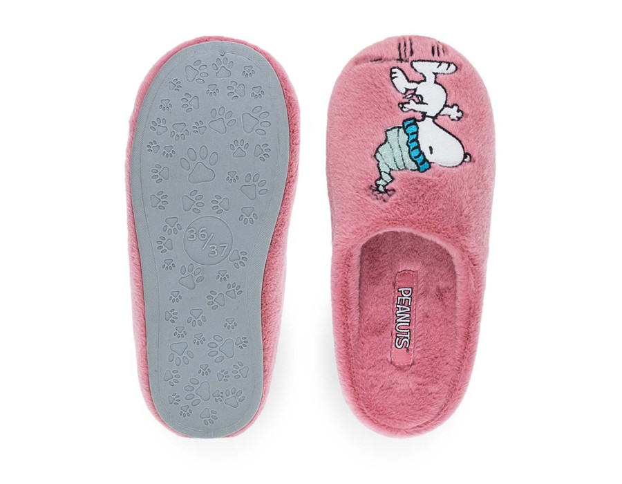Γυναικείες παντόφλες σπιτιού Peanuts. Παντόφλες Parex με τον αγαπημένο Snoopy σε μπεζ και ροζ χρώμα. Μαλακές και παιχνιδιάρικες για χαρούμενες στιγμές στο σπίτι.