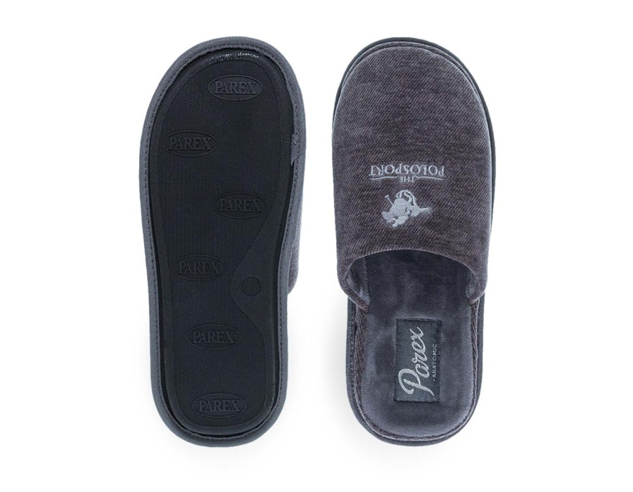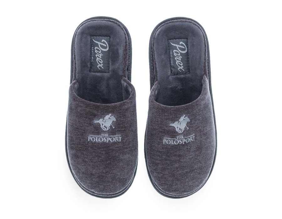 Ανδρικές παντόφλες σπιτιού Parex. Ανατομικές ανδρικές παντόφλες σπιτιού Parex για άνεση κάθε στιγμή στο σπίτι. Με κλασικό σχέδιο The Polosport σε γκρι και μπλε χρώμα, προσφέρουν μαλακό πάτημα και σταθερό κράτημα. Ιδανικές για χαλάρωση με στυλ και ποιότητα που ξεχωρίζει.