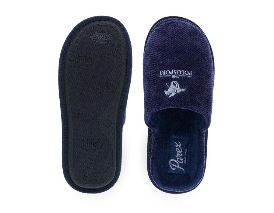 Ανδρικές παντόφλες σπιτιού Parex. Ανατομικές ανδρικές παντόφλες σπιτιού Parex για άνεση κάθε στιγμή στο σπίτι. Με κλασικό σχέδιο The Polosport σε γκρι και μπλε χρώμα, προσφέρουν μαλακό πάτημα και σταθερό κράτημα. Ιδανικές για χαλάρωση με στυλ και ποιότητα που ξεχωρίζει.