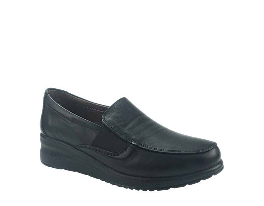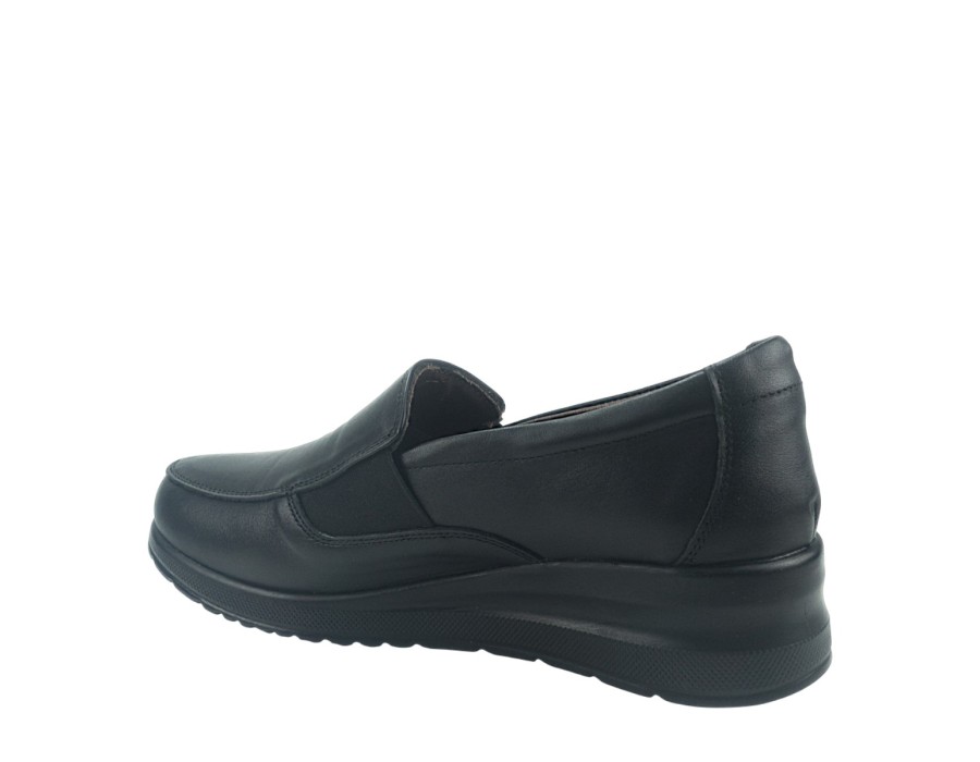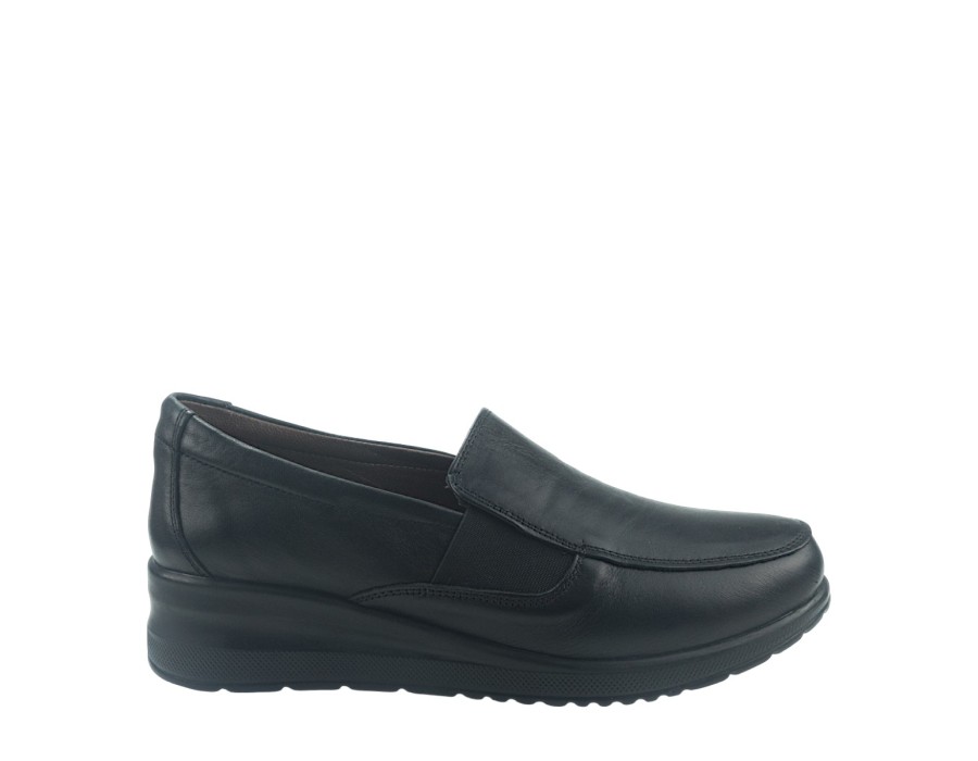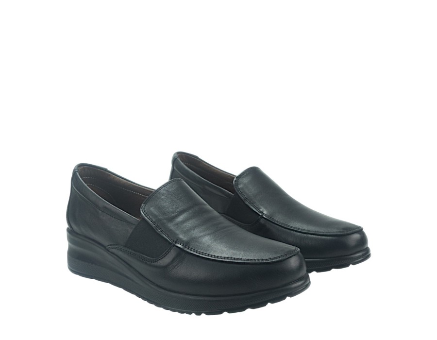 Γυναικεία loafers από δέρμα και ύφασμα σε μαύρο χρώμα. Διαθέτουν χαμηλό τακούνι για άνετα βήματα