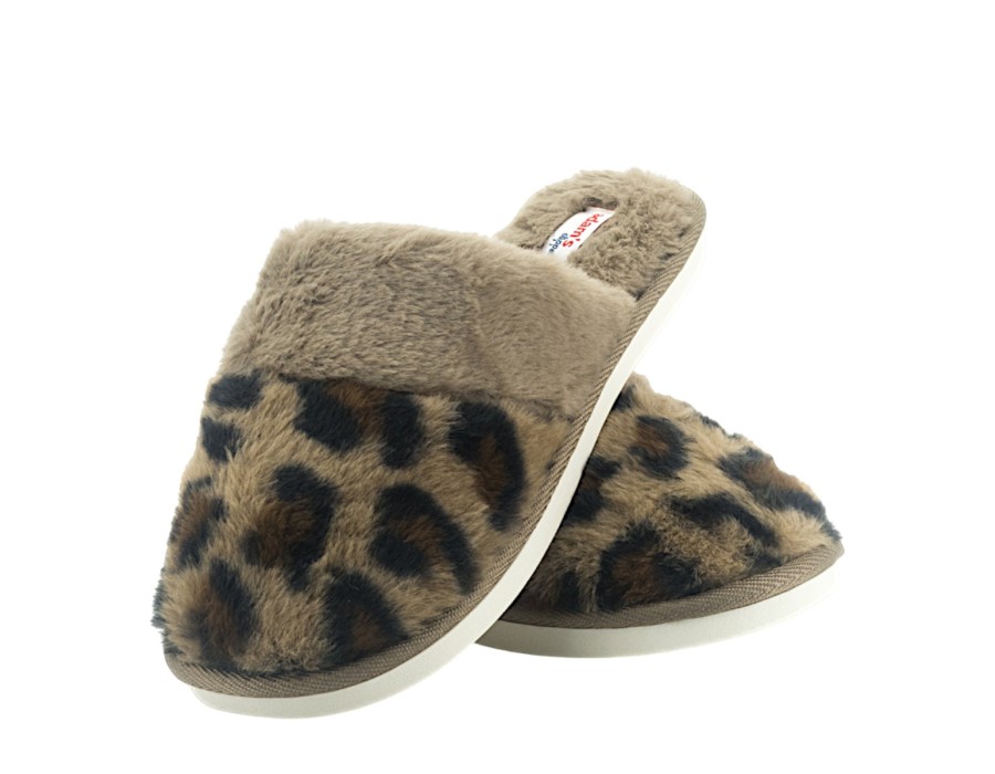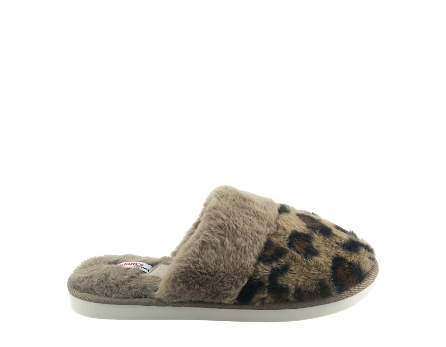 Παντόφλες ADAM'S σε λεοπαρ χρώμα. Η άνεση που προσφέρουν οι παντόφλες της συγκεκριμένης εταιρείας με το απαλό ζεστό ύφασμα είναι μοναδική.
