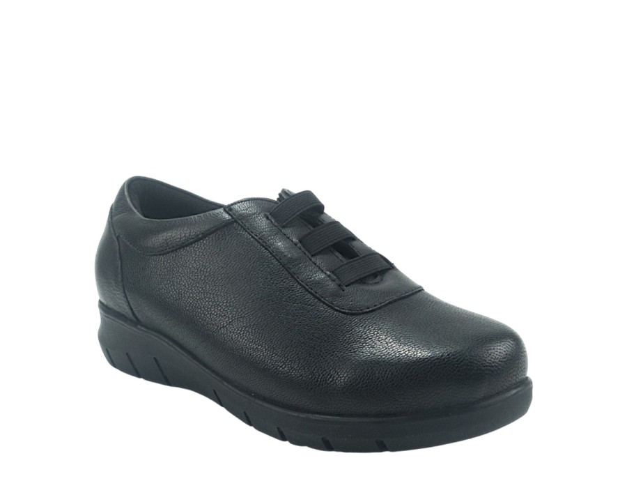 Γυναικεία loafers από δέρμα και ύφασμα σε μαύρο χρώμα. Διαθέτουν χαμηλό τακούνι για άνετα βήματα