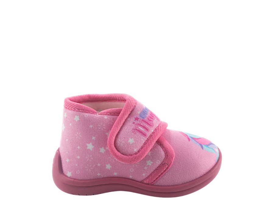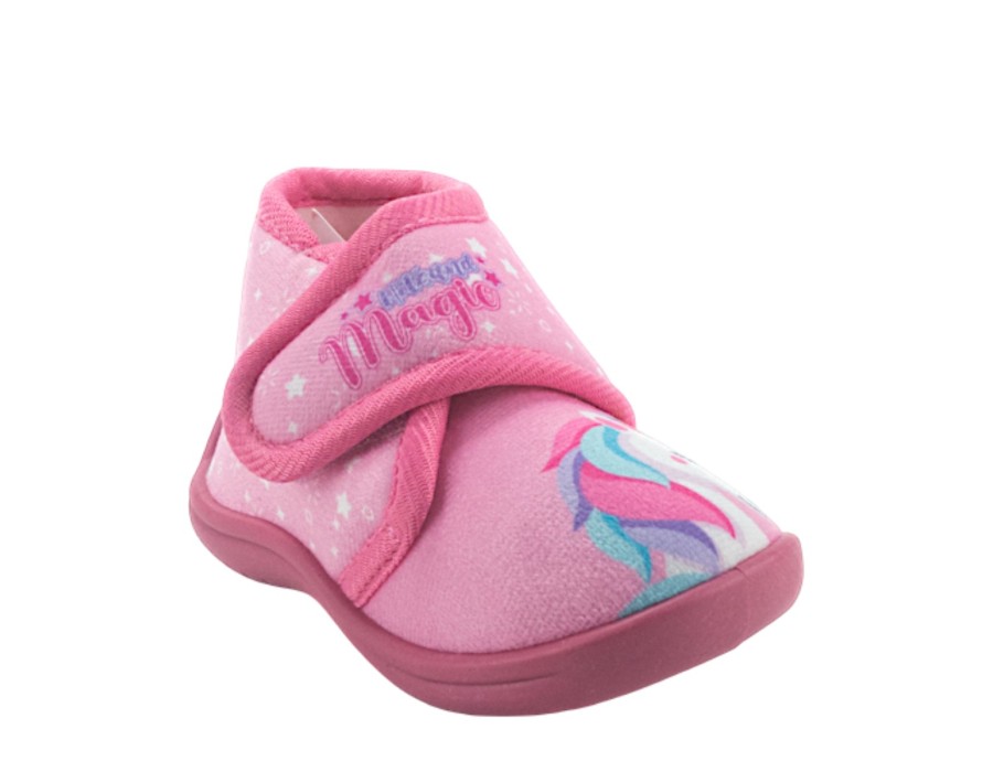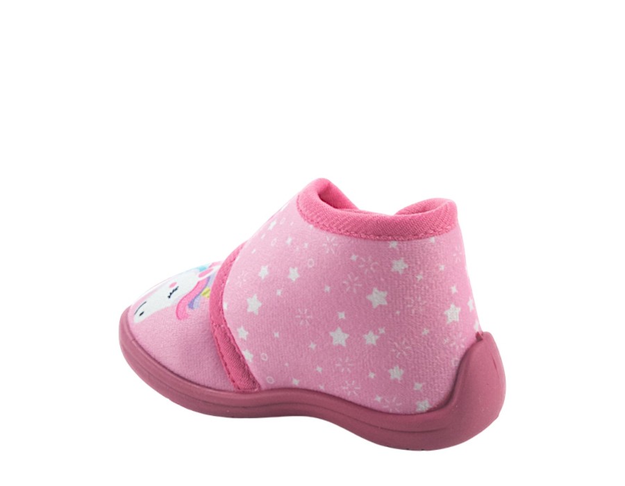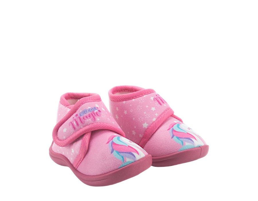 Παντόφλες παιδικές κλειστές σε ροζ χρώμα με σχέδιο μονόκερο. Με αντιολισθητική σόλα για άνεση και ασφάλεια μέσα στο σπίτι.
