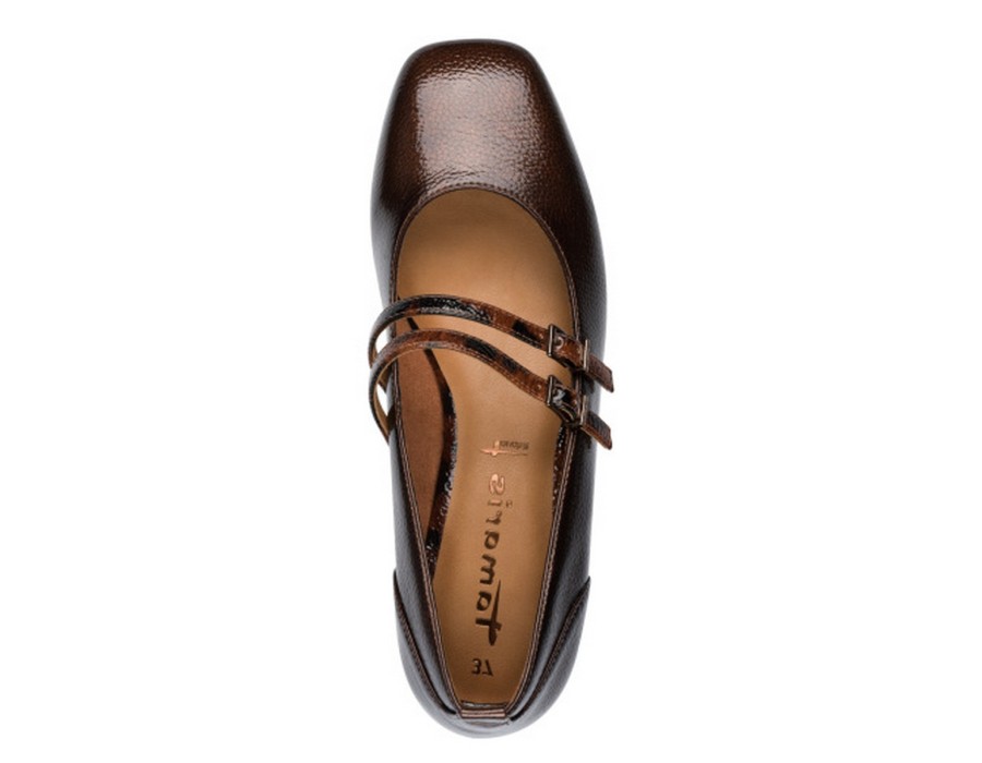 Γυναικείες γόβες Tamaris σε καφέ χρώμα και τακούνι 3.5 εκ. Κατασκευασμένες από συνθετικό δέρμα υψηλής ποιότητας. Διαθέτουν τεχνολογία touch it για να προσφέρουν μεγαλύτερη άνεση και διαθέτουν έναν πολύ μαλακό πάτο. Κομψό και διαχρονικό σχέδιο, που οφείλει κάθε γυναίκα να έχει στη γκαρνταρόμπα της.