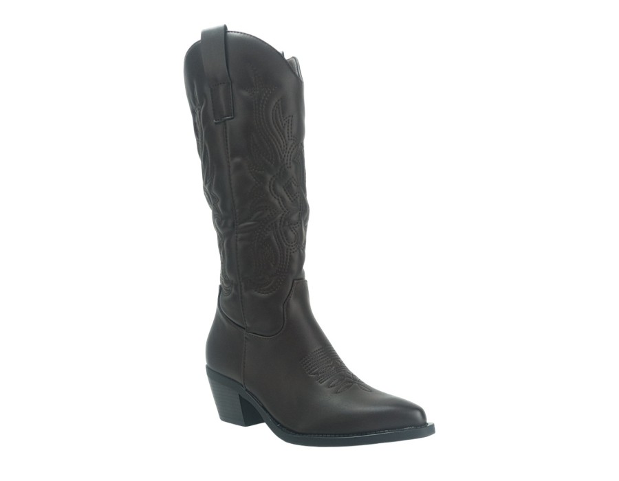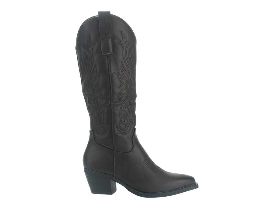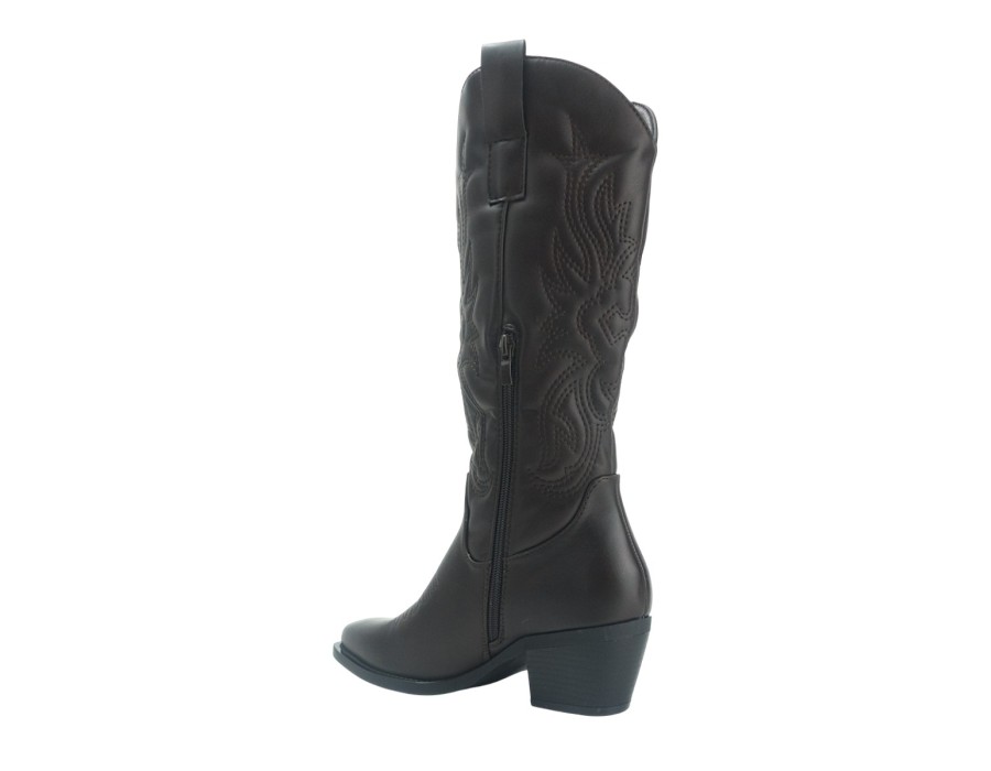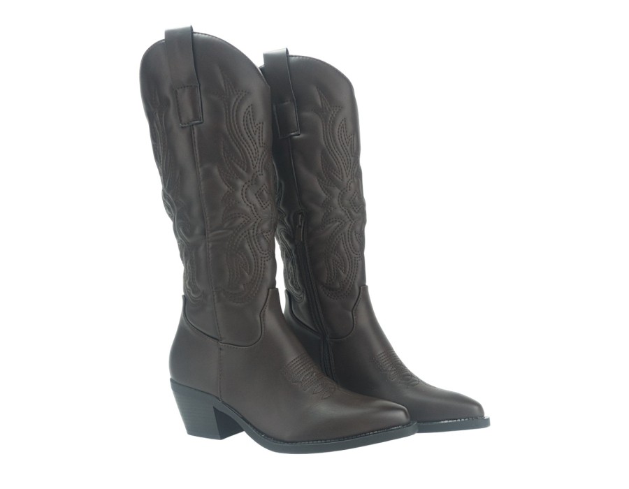 Cowboy μπότες με ραφές και δύο θηλιές στο πάνω μέρος. Cowboy boots με χοντρό τακούνι και φερμουάρ στην εσωτερική πλευρά.