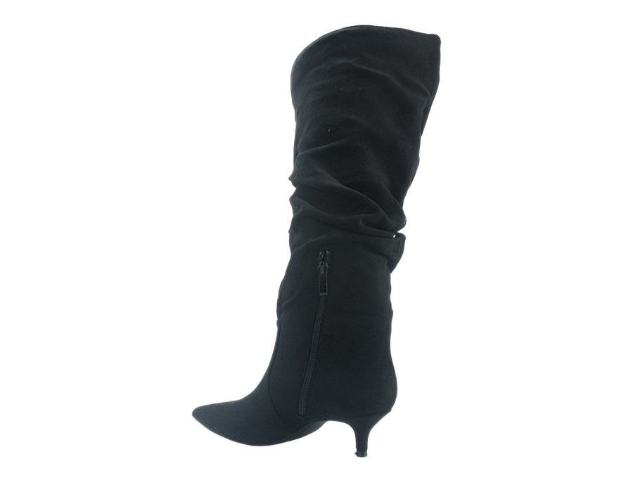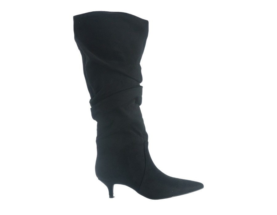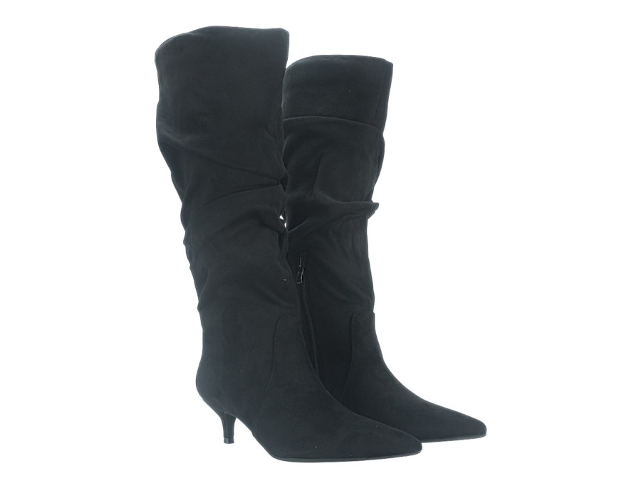 Γυναικεία μπότα σε μαύρο χρώμα. Κατασκευασμένο από συνθετικό suede. Το ύψος του τακουνιού είναι 6 εκ.
