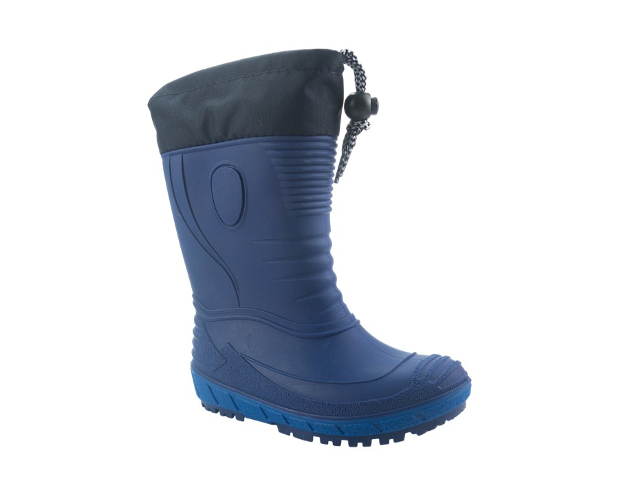 Παιδική γαλότσα από αδιάβροχο πλαστικό της εταιρίας ZAK σε μπλε απόχρωση με κολάρο για προστασία από το νερό και αντιολισθητικό πλαστικό που προσφέρει σταθερότητα.