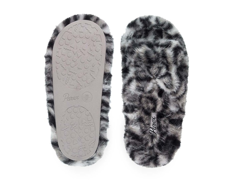 Γυναικείες παντόφλες Parex σπιτιού ανοιχτές μπροστά. Γυναικείες παντόφλες Parex με animal print σε μπεζ και γκρι αποχρώσεις. Ζεστές και στιλάτες, για ιδιαίτερες εμφανίσεις στο σπίτι.