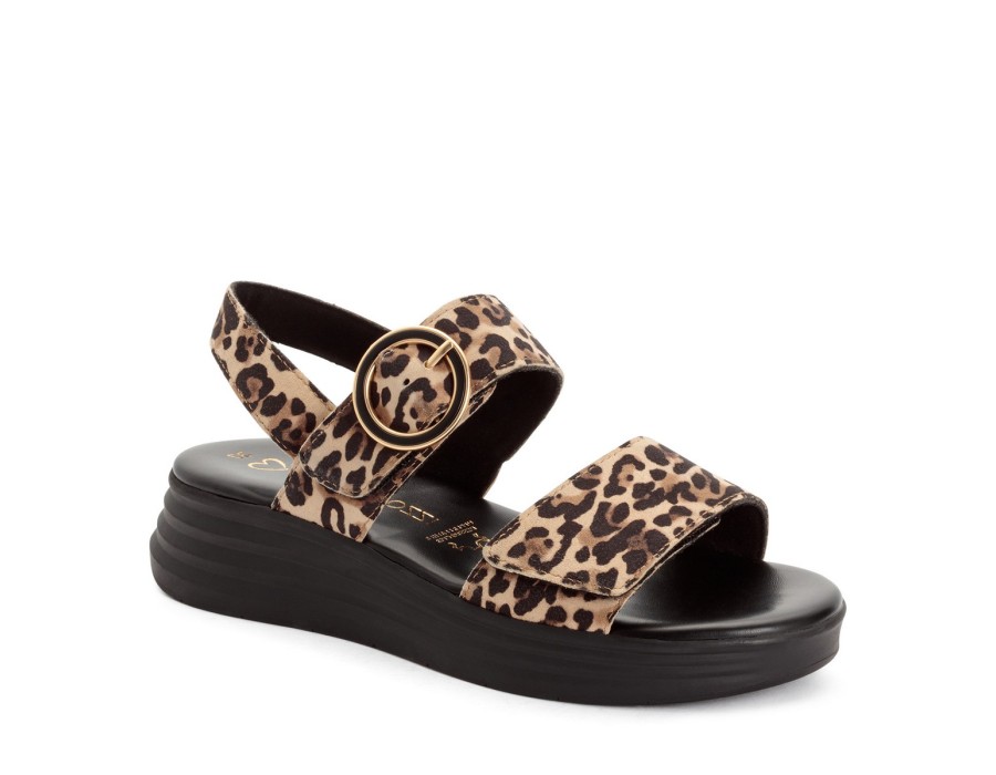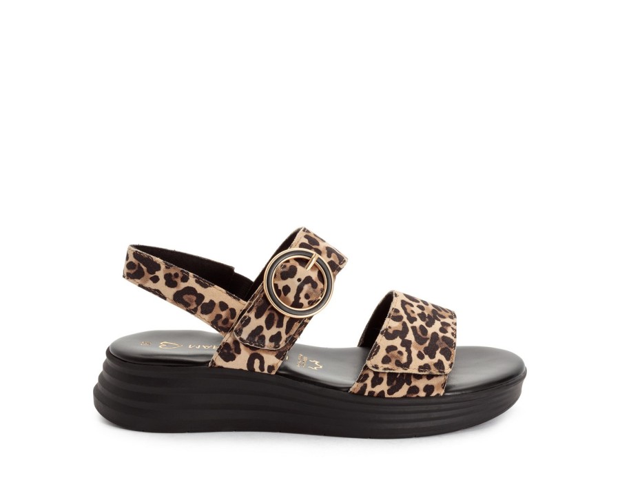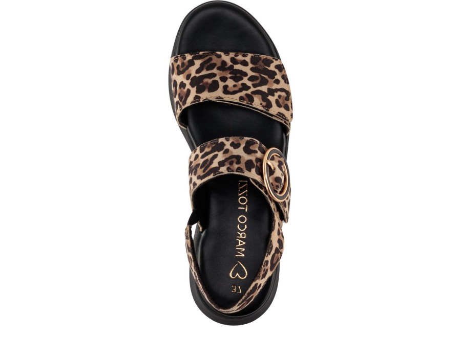 Γυναικείo πέδιλο της εταιρείας Marco Tozzi δερμάτινο, με ελαφριά σόλα ύψους 4 εκατοστών σε ένα συνδυασμό χρωμάτων λεοπαρ και μαύρου.