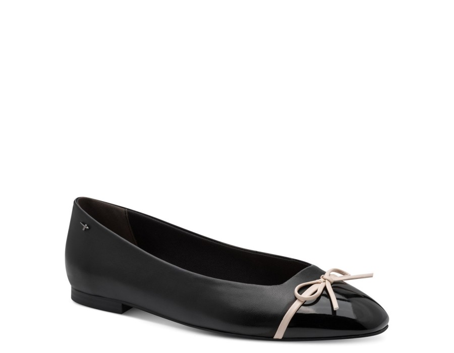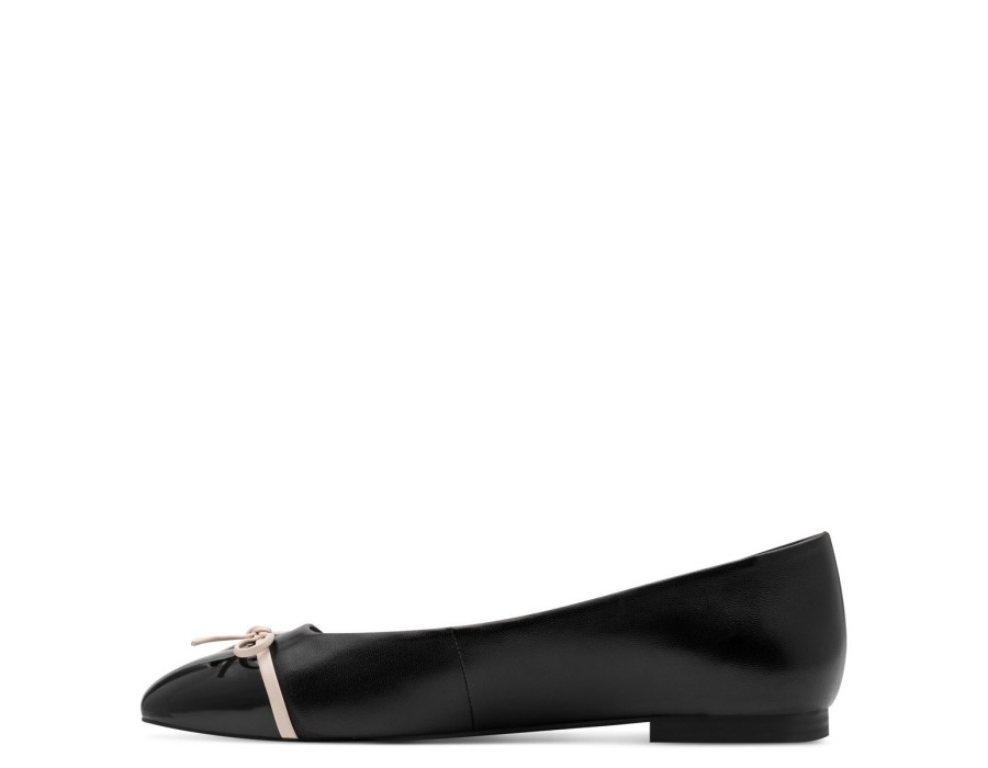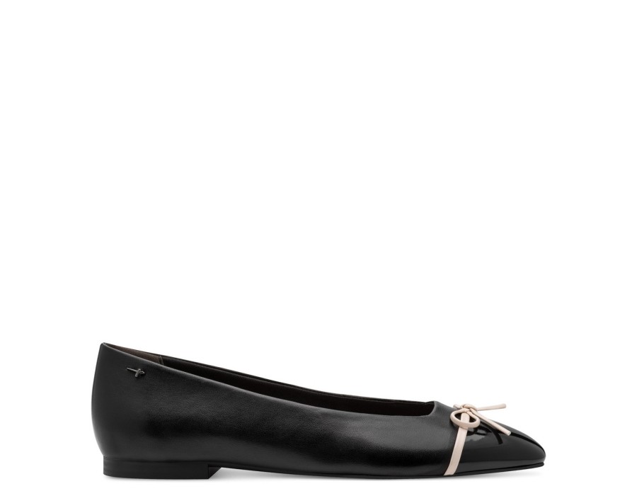 Μπαλαρίνα της μάρκας Tamaris σε μαύρο χρώμα με χρυσό διακοσμητικό φιόγκο στο μπροστινό μέρος. Κατασκευασμένη από δέρμα και υψηλής ποιότητας συνθετικό δέρμα. Εξοπλισμένη με την τεχνολογία TOUCH-IT/Anti-Slide διαθέτει άνετη γραμμή και έναν πολύ μαλακό πάτο ενώ έχει ύψος τακουνιού 1 εκ. Άνετη και ευκολοφόρετη για όλη την ημέρα.