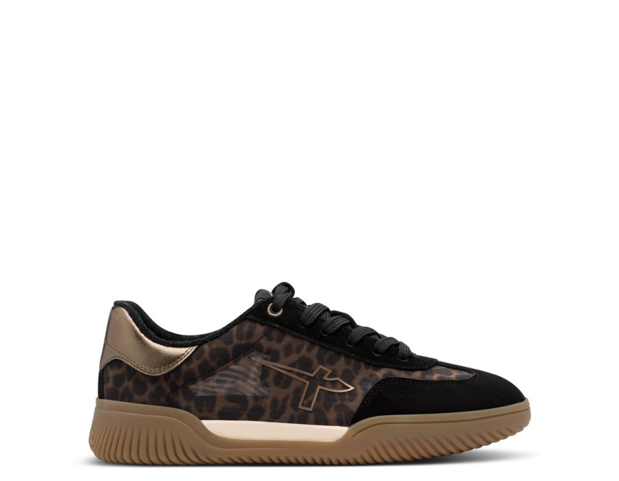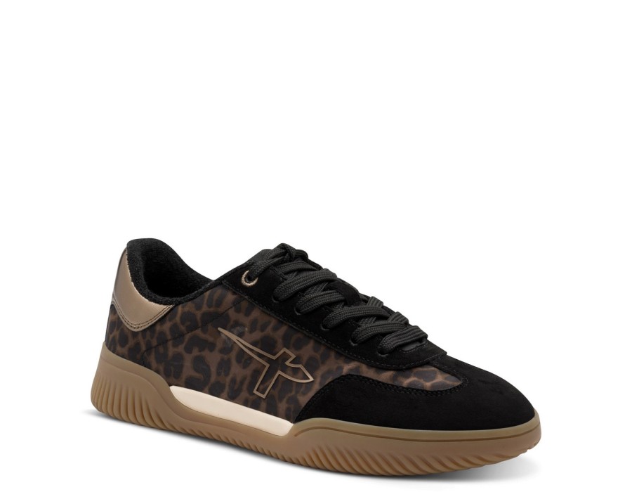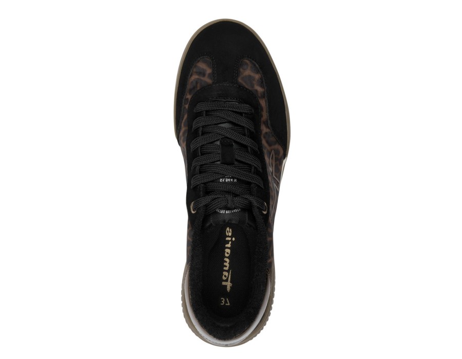 Γυναικείο sneaker παπούτσι του οίκου TAMARIS σε έναν ιδιαίτερο συνδυασμό χρωμάτων λεοπάρ και μαύρου, είναι κατασκευασμένο από δέρμα, υψηλής ποιότητας συνθετικό δέρμα και ύφασμα. Διαθέτει σόλα υψηλής ποιότητας ενώ το ύψος του τακουνιού είναι 1,5 εκ.