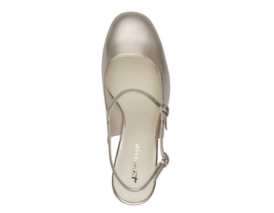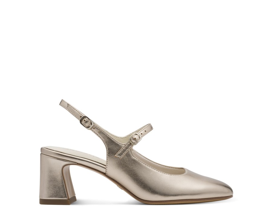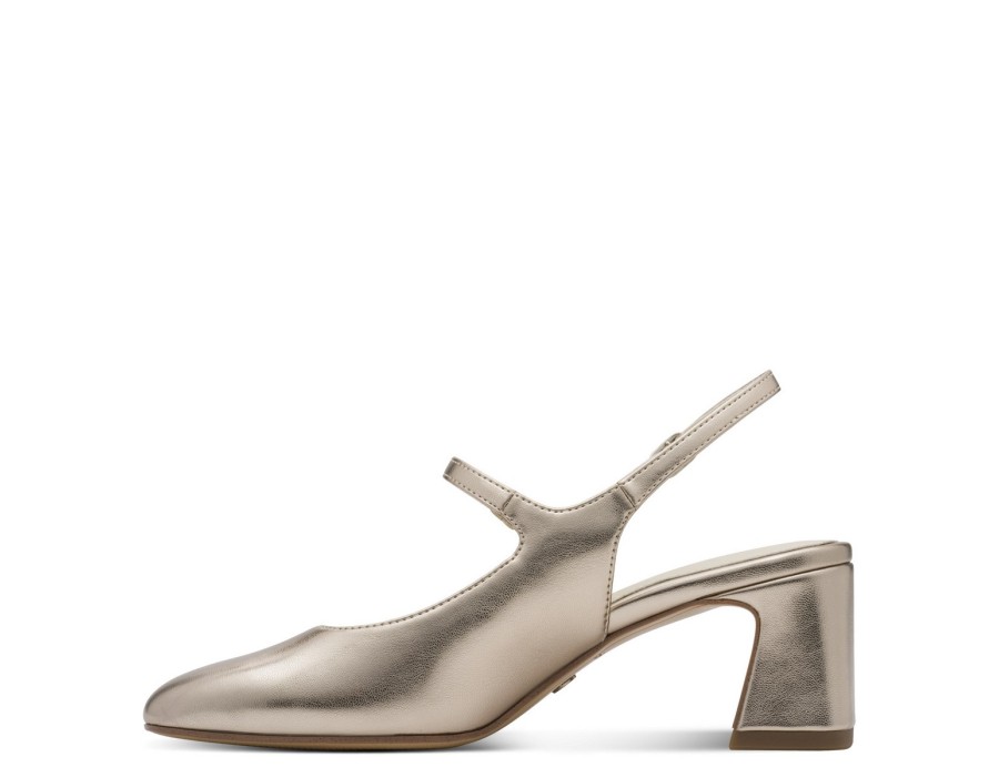 Γυναικείες γόβες Tamaris σε χρυσό χρώμα και τακούνι 5,5 εκ. Κατασκευασμένες από συνθετικό δέρμα υψηλής ποιότητας. Διαθέτουν τεχνολογία TOUCH-IT/Anti-Slide για να προσφέρουν μεγαλύτερη άνεση και διαθέτουν έναν πολύ μαλακό πάτο. Κομψό και διαχρονικό σχέδιο, που οφείλει κάθε γυναίκα να έχει στη γκαρνταρόμπα της.