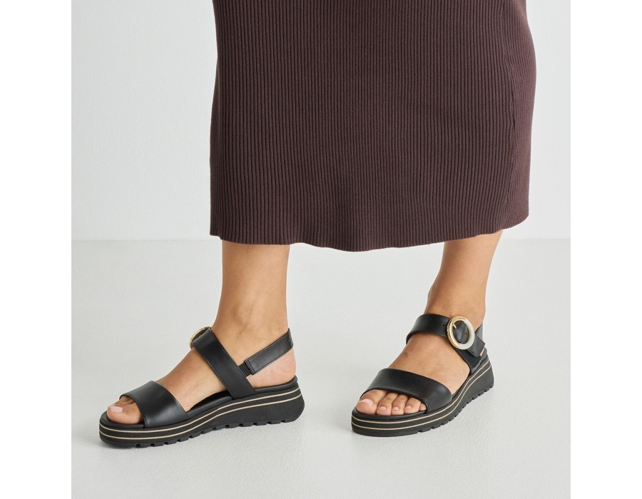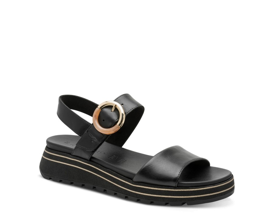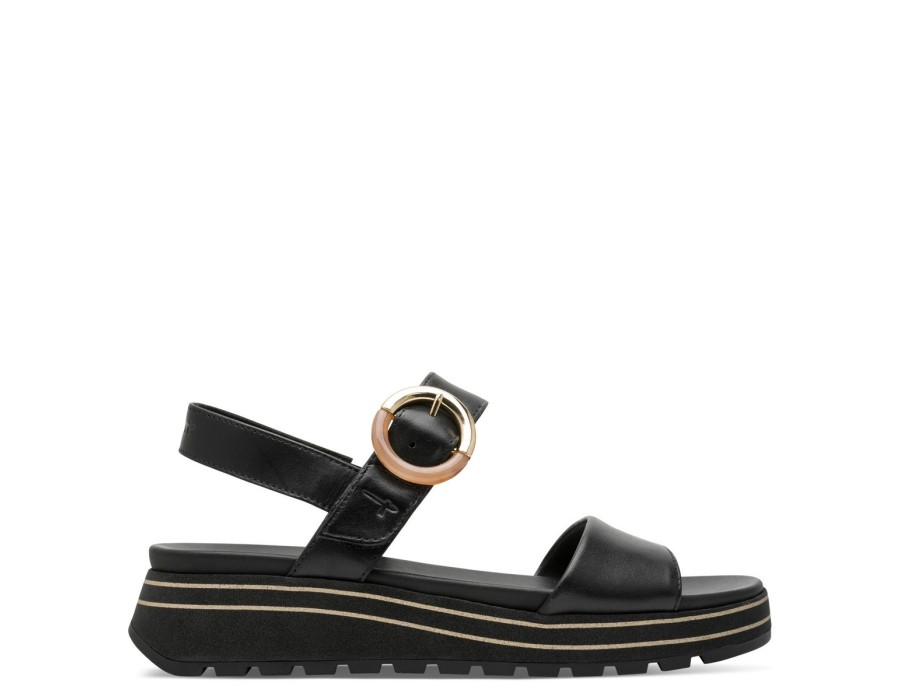Γυναικεία σανδάλια με λουράκι που δένει γύρω από τον αστράγαλο, της εταιρίας Tamaris. Είναι κατασκευασμένα από δέρμα, ένα υλικό που αναπνέει βοηθώντας στην αποφυγή δυσάρεστων οσμών, ενώ παράλληλα καθαρίζεται εύκολα. Προσαρμόζονται στη φόρμα του ποδιού παρέχοντας επιπλέον άνεση.