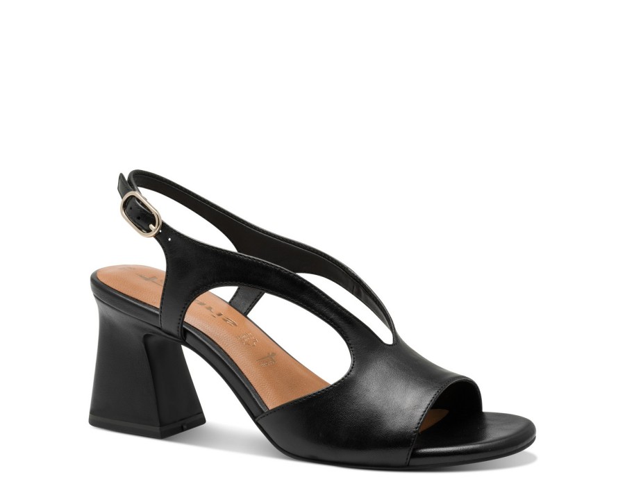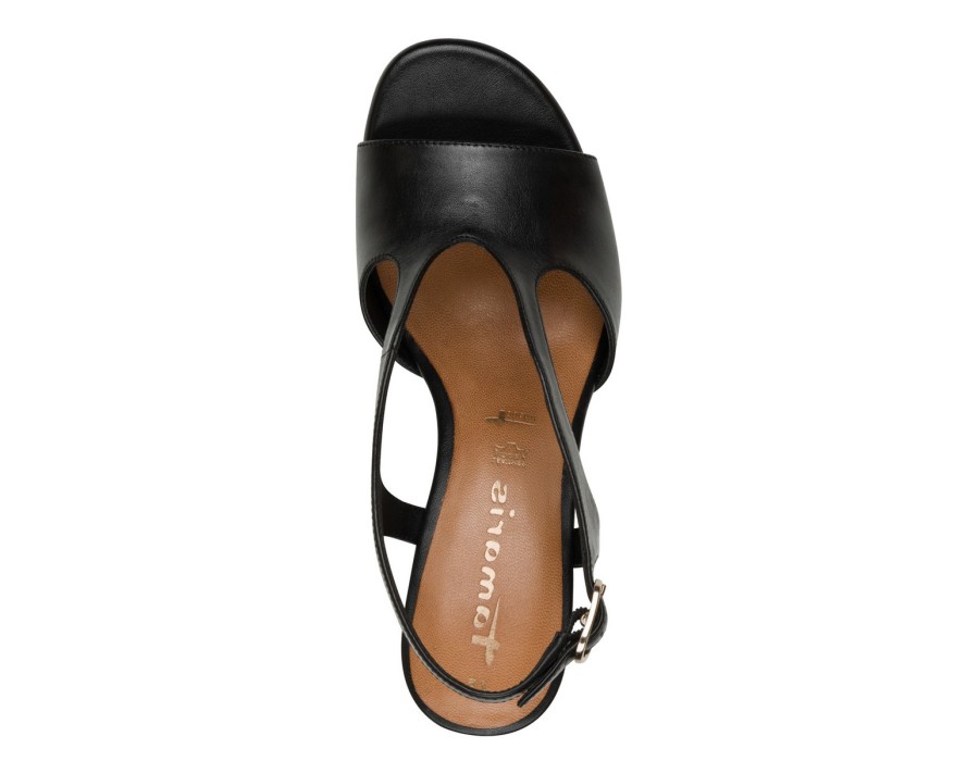 Καλοκαιρινά γυναικεία πέδιλα Tamaris σε μαύρο χρώμα. Δερμάτινα εσωτερικά & εξωτερικά με ύψος τακουνιού 7 εκ. Διαθέτουν τεχνολογία TOUCH-IT/Anti-Slide με μαλακό πάτο για πιο ξεκούραστο περπάτημα