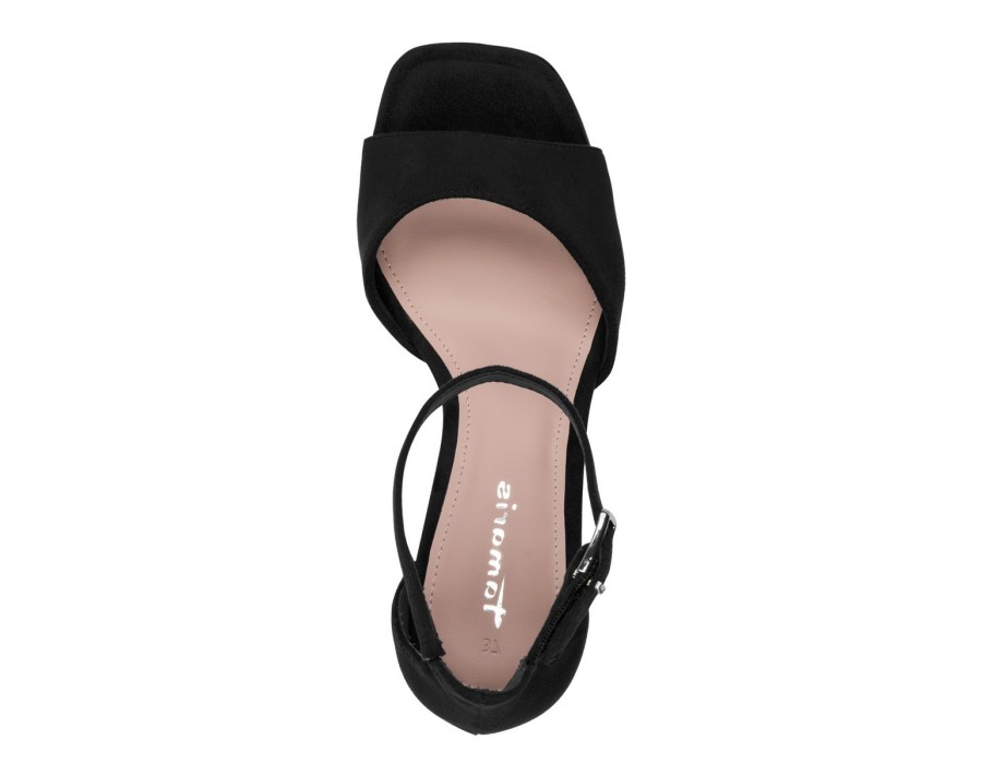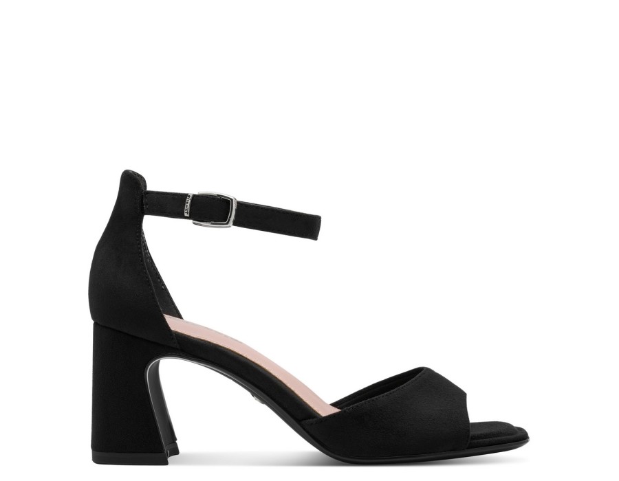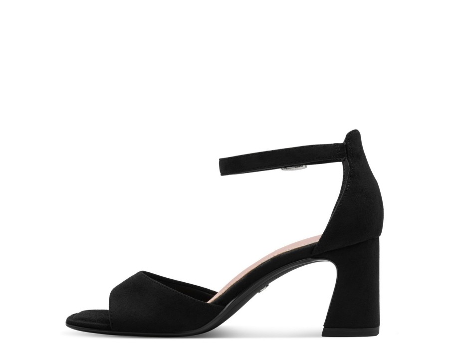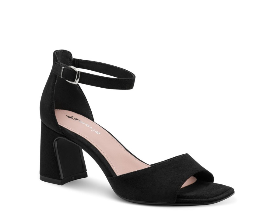 Γυναικείo πέδιλο της εταιρείας Tamaris κατασκευασμένο από υψηλής ποιότητας ύφασμα suede. Είναι εξοπλισμένο με την τεχνολογία TOUCH-IT/Anti-Slide με μαλακό πάτο για πιο ξεκούραστο περπάτημα. Με τακούνι ύψους 7 εκατοστών σε μαύρο χρώμα.