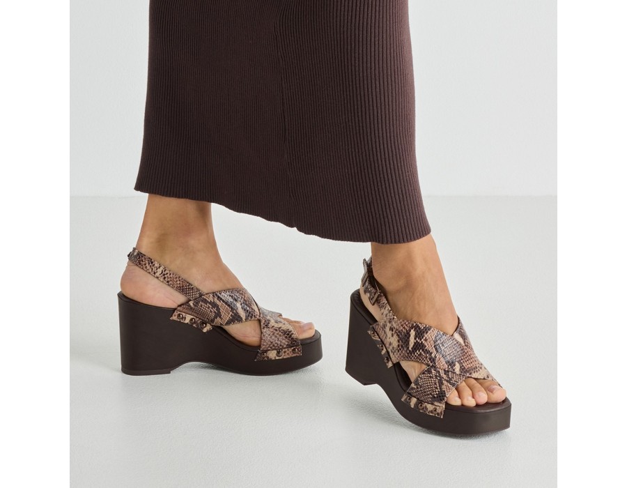 Γυναικεία πλατφόρμα με snake print, υφασμάτινη, εξοπλισμένη με την τεχνολογία TOUCH-IT/Anti-Slide με μαλακό πάτο για πιο ξεκούραστο περπάτημα. Το ύψος του τακουνιού είναι 12 εκ.