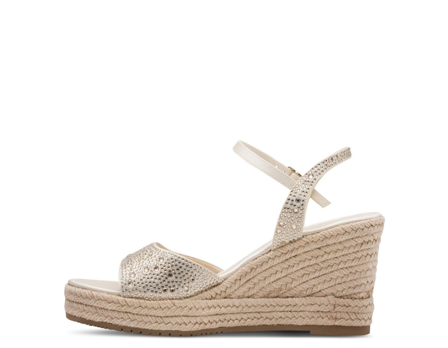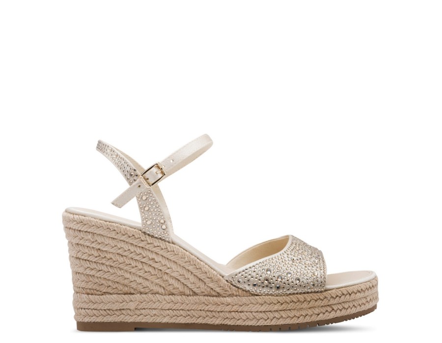 Γυναικεία πλατφόρμα μπεζ-χρυσή από ύφασμα και συνθετικό δέρμα με στρας στο μπροστινό μέρος. Το ύψος του τακουνιού είναι 8,5 cm., είναι εξοπλισμένα με την τεχνολογία TOUCH-IT/Anti-Slide με μαλακό πάτο για πιο ξεκούραστο περπάτημα. Τα πόδια σας θα είναι άνετα οποιαδήποτε στιγμή της ημέρας.