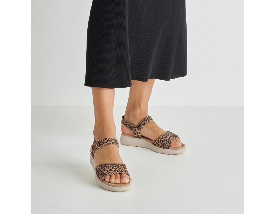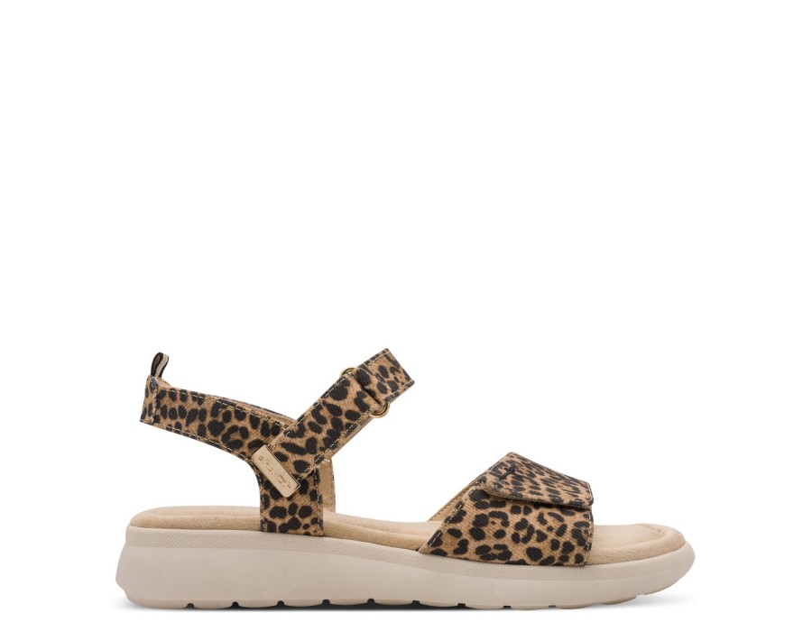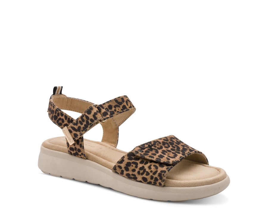 Γυναικεία πέδιλα Tamaris σε λεοπαρ χρώμα με μονοκόμματο πάτο για σταθερά και άνετα βήματα. Είναι εξοπλισμένα με την τεχνολογία TOUCH-IT που τα καθιστά πολύ άνετα καθώς διαθέτουν έναν πολύ μαλακό πάτο. Το ύψος του τακουνιού είναι 5,5 εκ.
