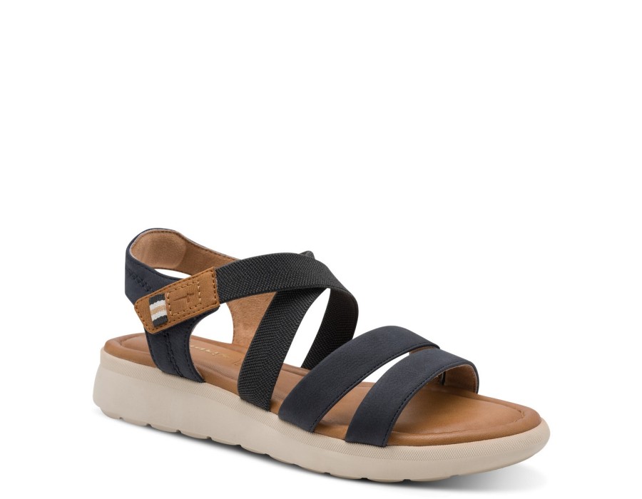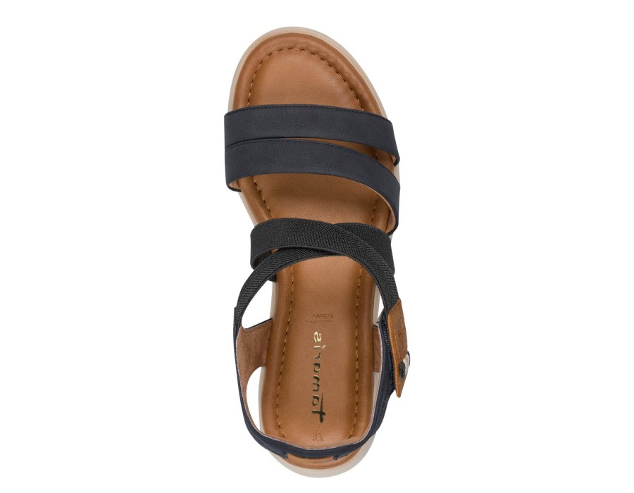 Γυναικεία πέδιλα σε navy απόχρωση, κατασκευασμένα από συνθετικό δέρμα υψηλής ποιότητας του οίκου TAMARIS, έχουν ύψος τακουνιού 5,5 εκατοστά, ενώ διαθέτουν τεχνολογία TOUCH-IT που τα καθιστά πολύ άνετα καθώς διαθέτουν έναν πολύ μαλακό πάτο.