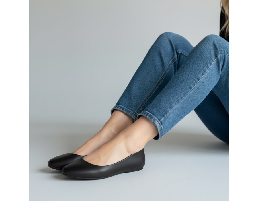 Γυναικεία μπαλαρίνα σε ένα κομψό σχέδιο κατάλληλο για καθημερινές δραστηριότητες σε μαύρο χρώμα κατασκευασμένη από συνθετικό δέρμα.
