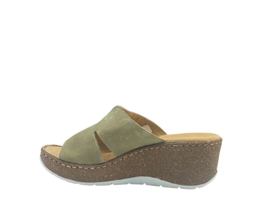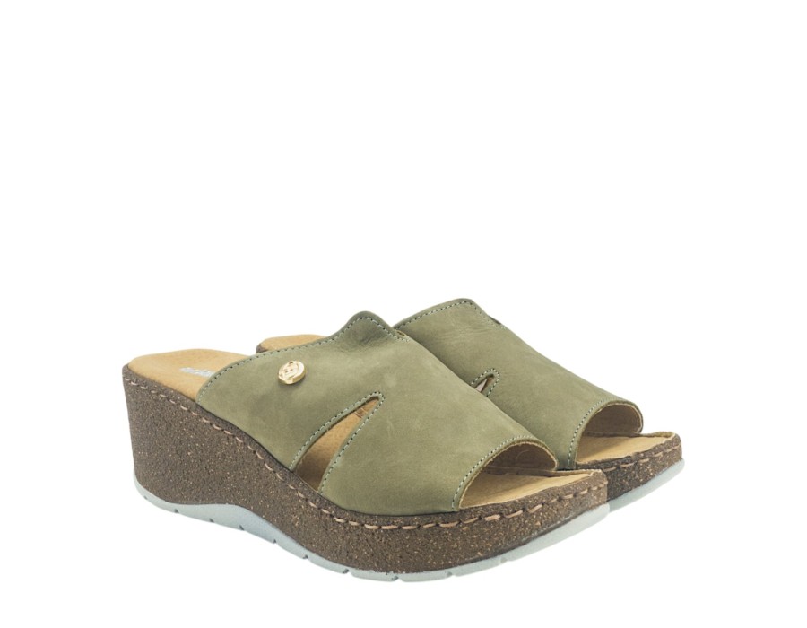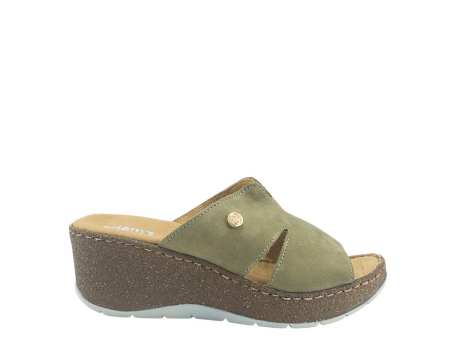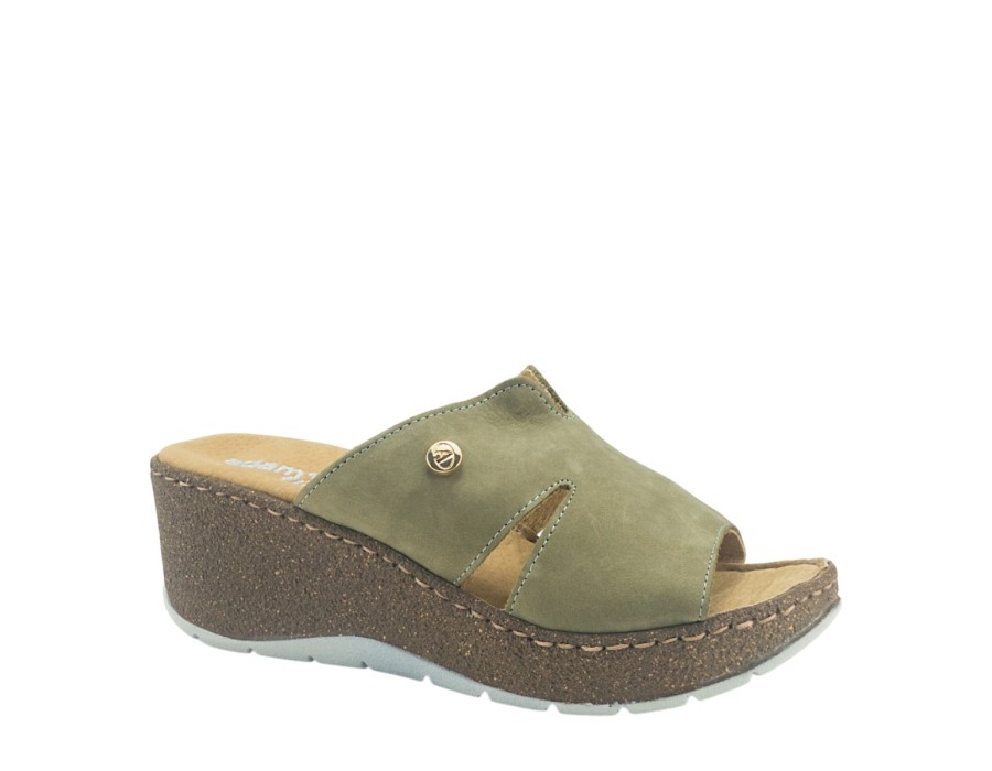 Πλατφόρμες mules σε πράσινο χρώμα από την εταιρία Adams. Κατασκευασμένες από δέρμα, προσφέρουν φυσικό καλοκαιρινό ύφος και άνεση. Το ύψος του τακουνιού είναι 6 εκ.