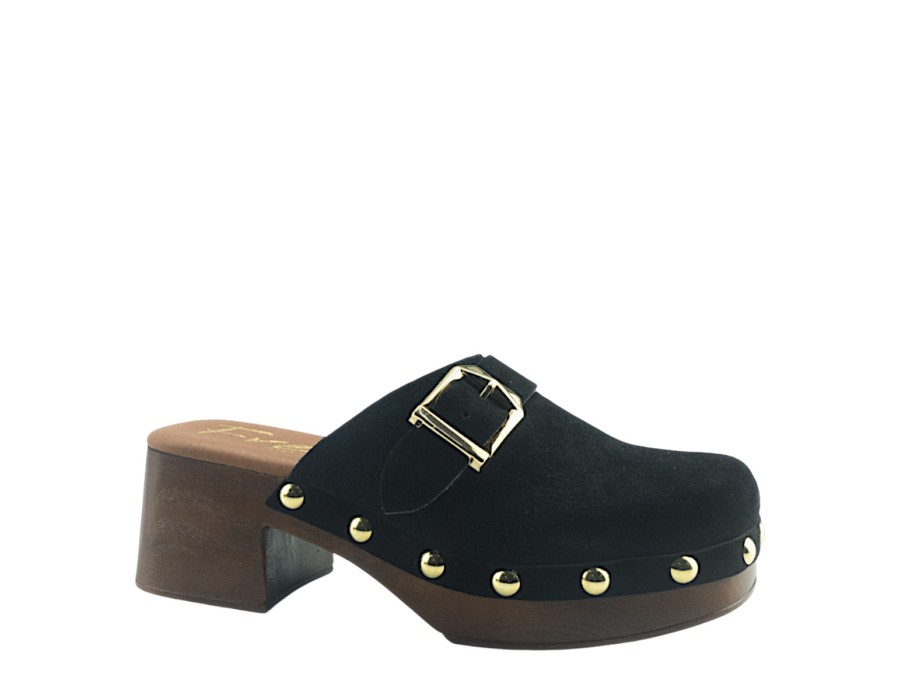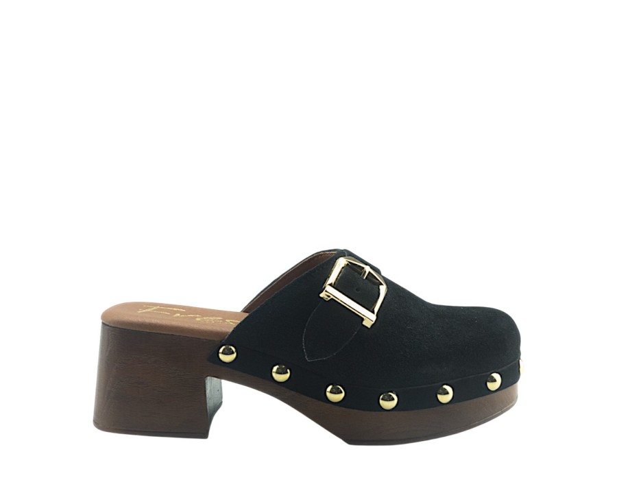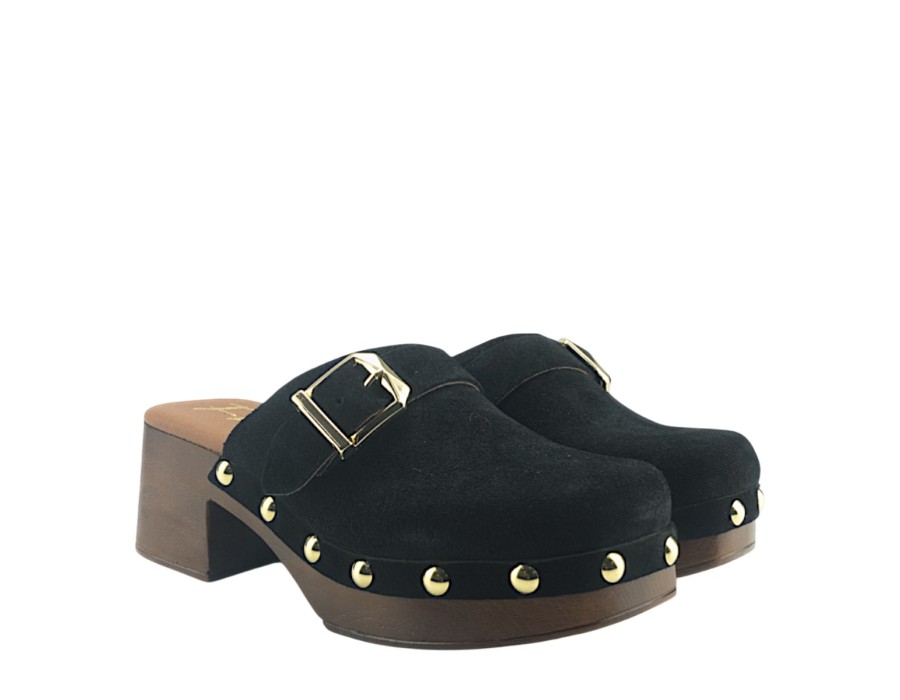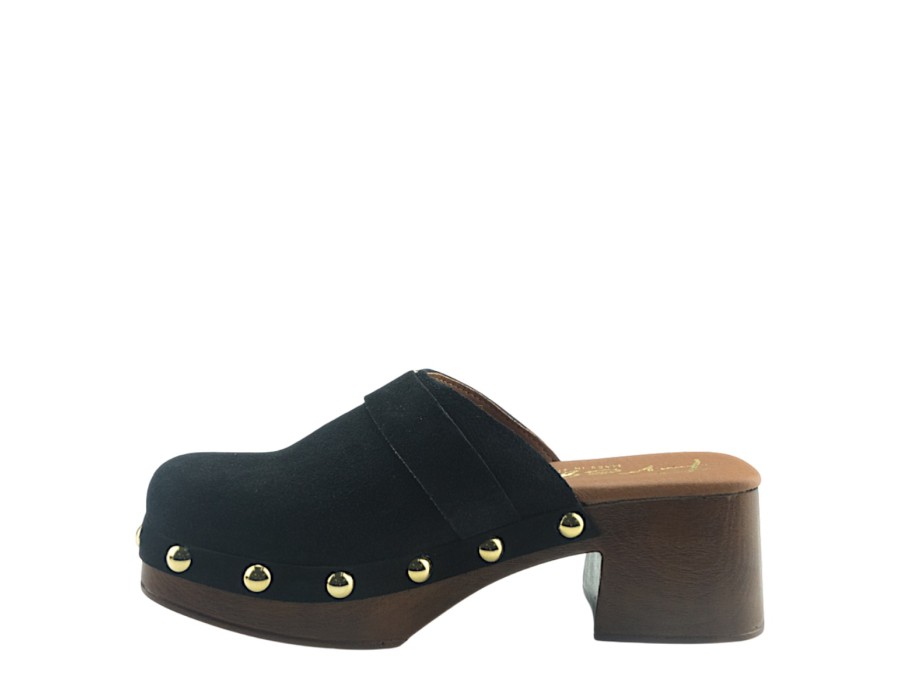 Μules suede με τακούνι ύψους 6 cm με ξύλινο φινίρισμα. Σόλα με επένδυση που εγγυάται μεγάλη άνεση.