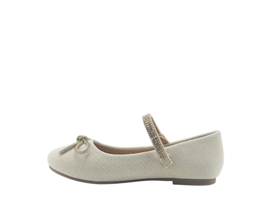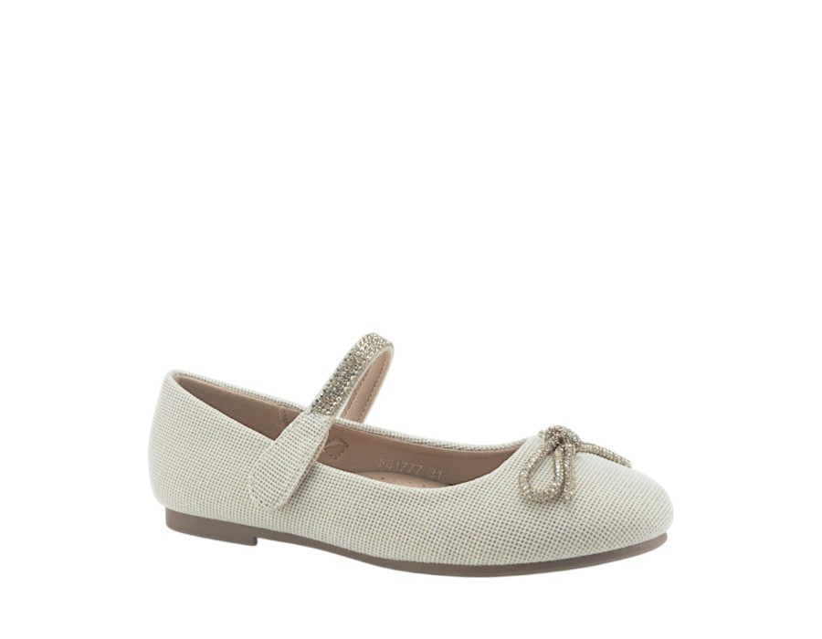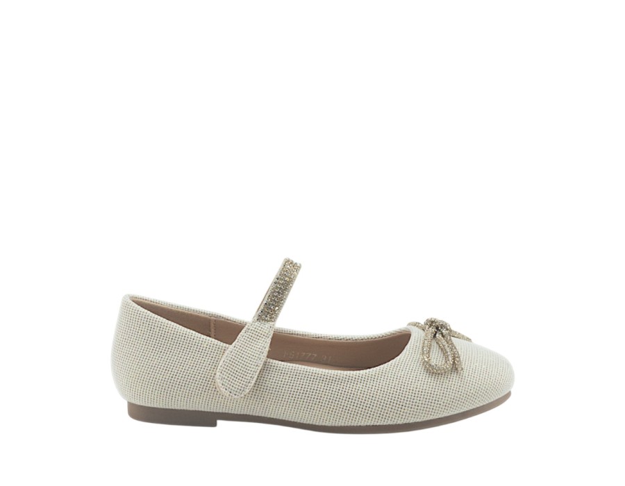 Παιδικές μπαλαρίνες σε μπεζ χρώμα, κατασκευασμένες από συνθετικό δέρμα. Σε ένα χαριτωμένο σχέδιο, που θα χαρίσει στις μικρές σας, παραμυθένιες εμφανίσεις.Διαθέτουν δερμάτινο πάτο.