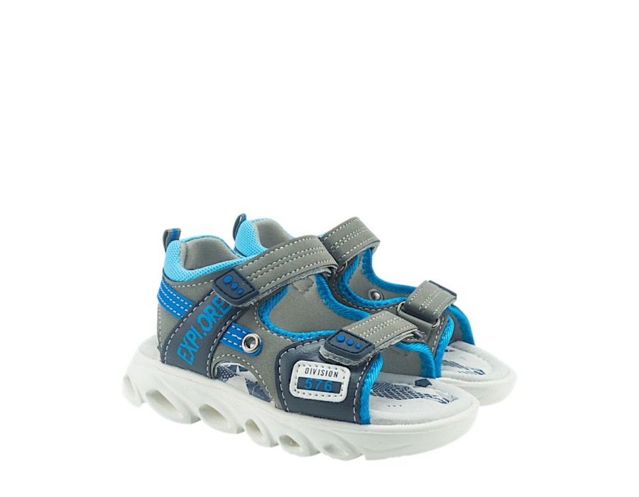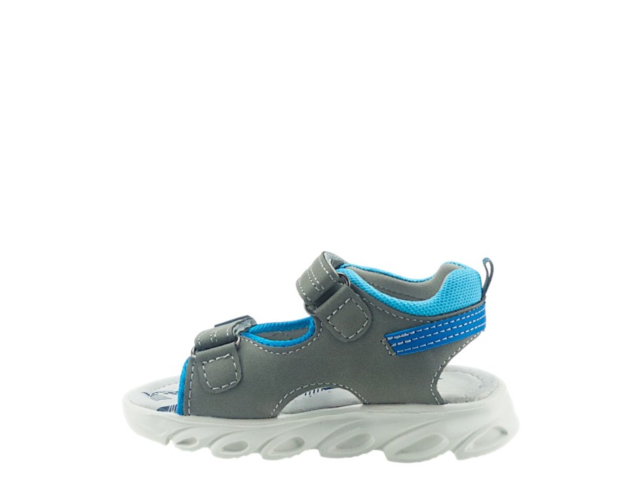 Παιδικό πέδιλο για αγοράκια σε γρκι χρώμα. Δέσιμο με αυτοκόλλητο κούμπωμα. Ιδανικό για το καλοκαίρι αφού επιτρέπει στο πόδι να αναπνέει και ταυτόχρονα το κρατάει σταθερό. Απαραίτητα για τους καλοκαιρινούς μήνες.