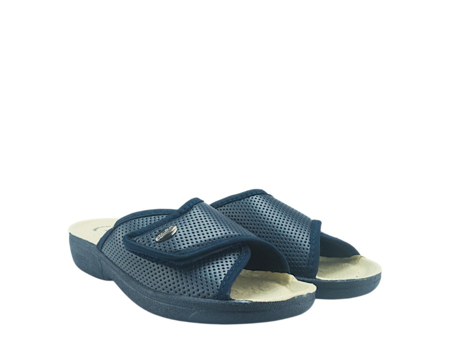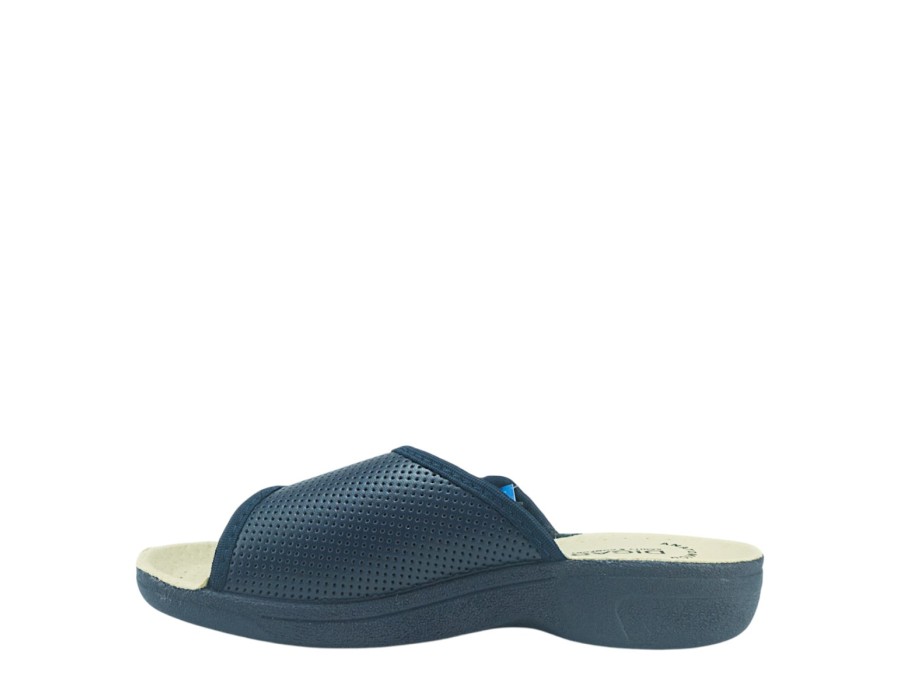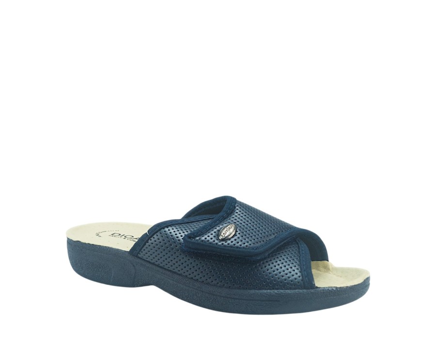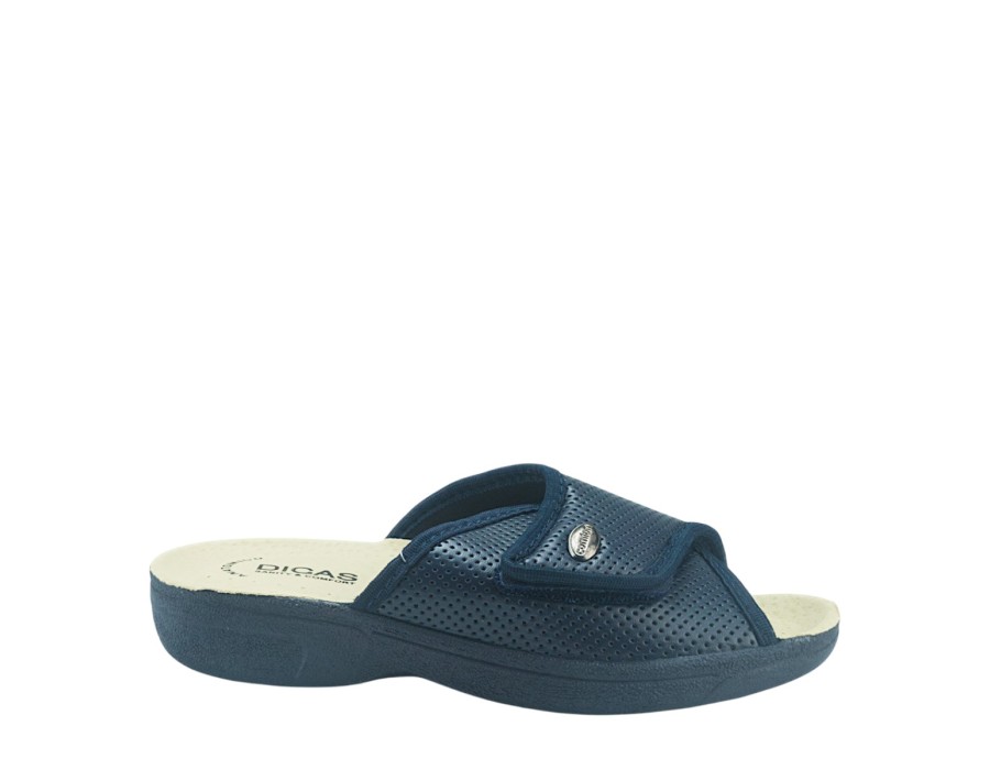 Γυναικείες εξώφτερνες παντόφλες από την ανοιξιάτικη συλλογή της Dicas, σε μπλε χρώμα. Στιλάτες ανοιξιάτικες παντόφλες, προσφέρουν άνεση και δροσερή αίσθηση ενώ είναι χαρακτηριστικά μαλακές στο πάτημα. Κατασκευασμένες από πρώτης ποιότητας ύφασμα και αντιολισθητικό δερμάτινο πάτο