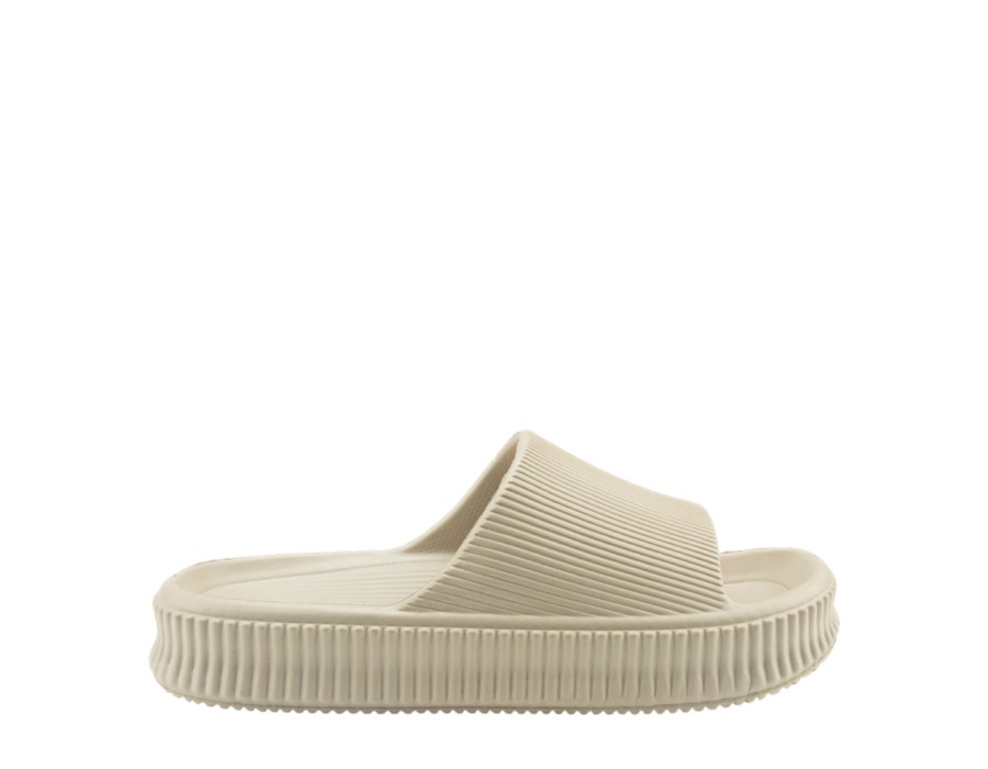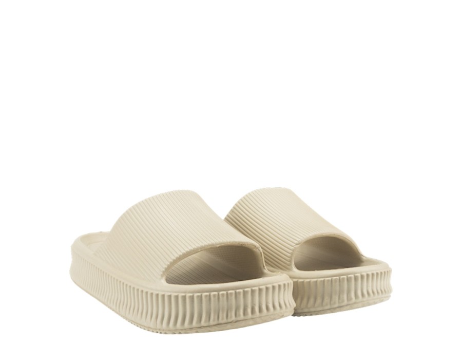 Σαγιονάρες τύπου slides, της εταιρείας Mitsuko, σε μπεζ χρώμα. Οι σαγιονάρες slides ή τύπου κολυμβητηρίου όπως ονομάζονται εναλλακτικά, είναι σχεδιασμένες έτσι ώστε να κρατάνε σταθερό το κουντεπιέ του ποδιού. Οι σαγιονάρες αποτελούν την καλύτερη λύση, κατά τους ζεστούς μήνες του χρόνου. Μπορούν να χρησιμοποιηθούν είτε μέσα στο σπίτι, την βόλτα, την παραλία ή την πισίνα. Προσφέρουν άνεση, καθώς δεν περιορίζουν το πόδι και δεν το αφήνουν να ιδρώσει.