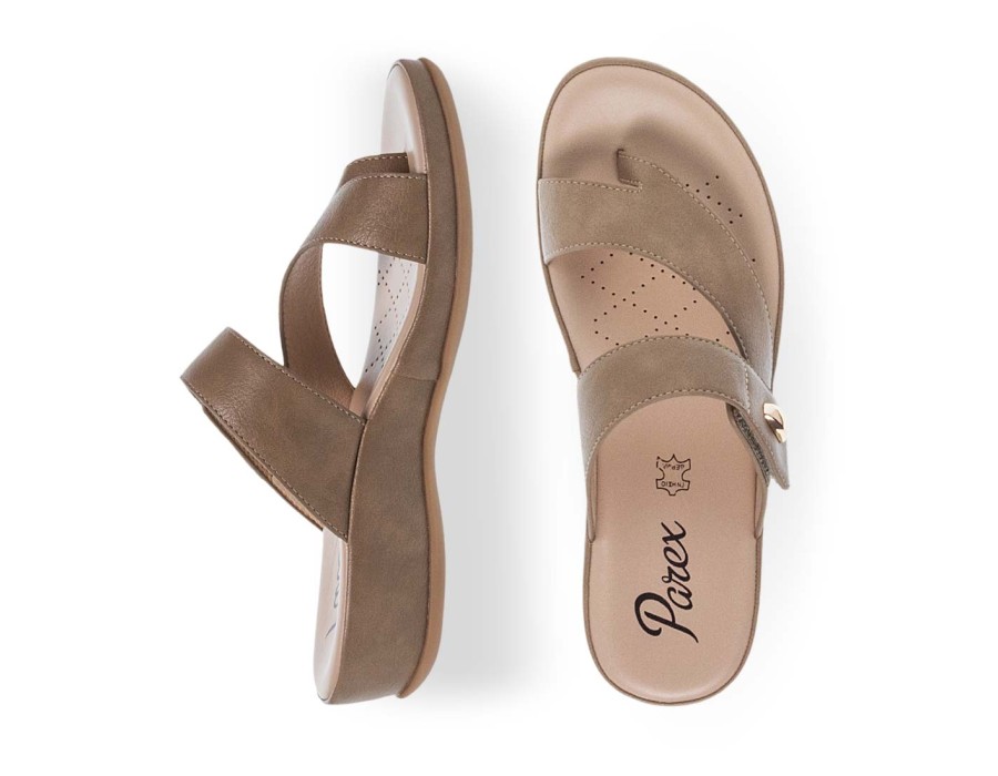 Γυναικεία σανδάλια της εταιρίας Parex. Είναι κατασκευασμένα από δέρμα και συνθετικό δέρμα, υλικά που αναπνέουν βοηθώντας στην αποφυγή δυσάρεστων οσμών, ενώ παράλληλα καθαρίζεται εύκολα. Προσαρμόζονται στη φόρμα του ποδιού παρέχοντας επιπλέον άνεση.