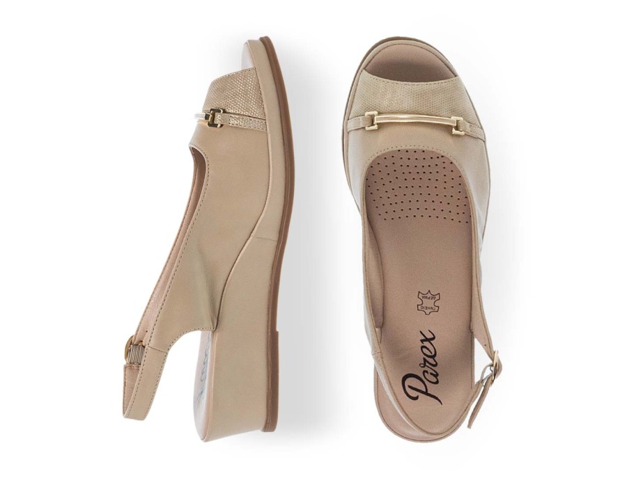 Γυναικείες πλατφόρμες Parex. Αναπαυτικες γυναικείες πλατφόρμες σε στιλ peep -toe με την υπογραφή της Parex. Διαθέτουν λουράκι στο πίσω μέρος που κλείνει με αγκράφα ώστε να προσαρμόζει σε κάθε τύπο ποδιού. Διαθέσιμες σε μπεζ χρώμα. Αναπαυτικός δερμάτινος πάτος και ανθεκτική σόλα. Διαχρονικές γυναικείες πλατφόρμες από την Parex που κάθε γυναίκα πρέπει να έχει στην καλοκαιρινή της συλλογή.