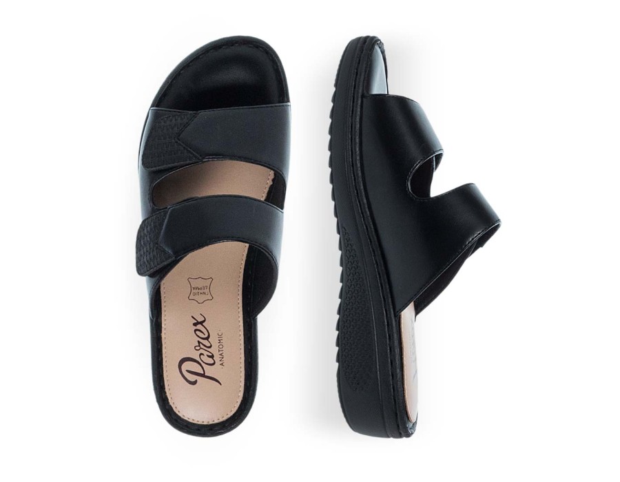 Γυναικεία σανδάλια Parex με δυο λουράκια στο επάνω μέρος που κλείνουν με αυτοκόλλητο. Τα συγκεκριμένα σανδάλια διαθέτουν μαλακό πάτημα και πάτο ανατομικών προδιαγραφών για να ξεκουράζουν τα πέλματά σας. Άνετα σανδάλια, για καθημερινή χρήση που προσφέρουν μια ανάλαφρη και ξεκούραστη αίσθηση βαδίσματος.