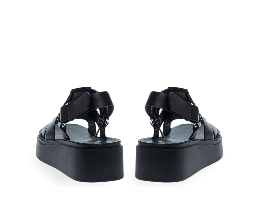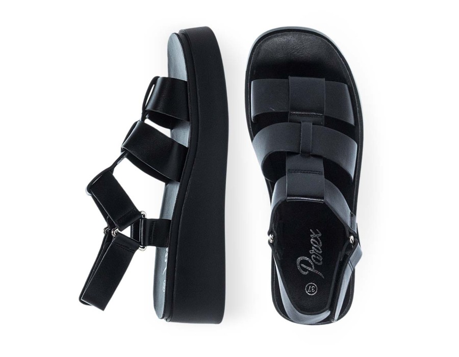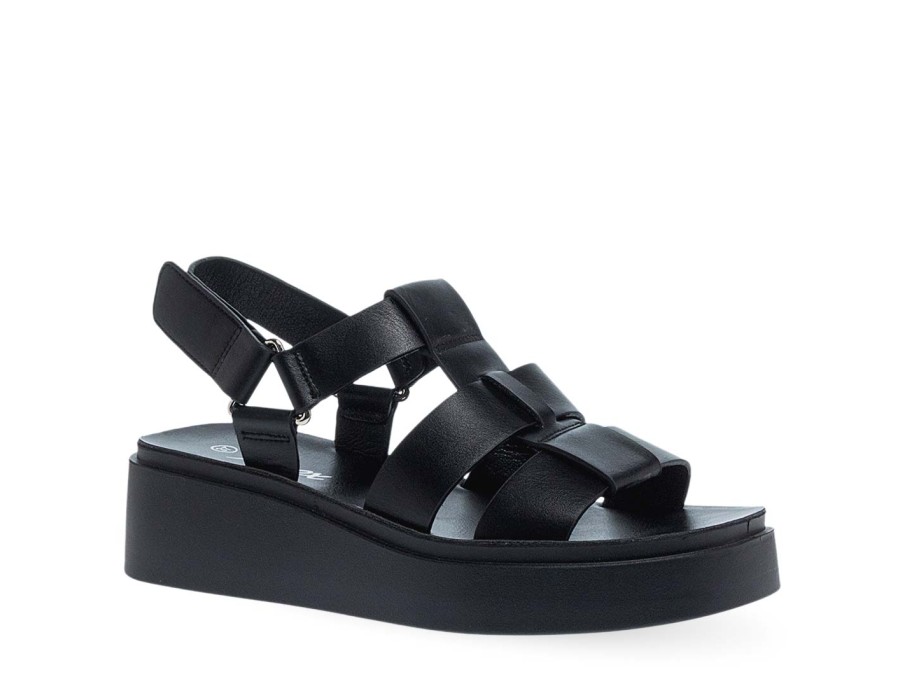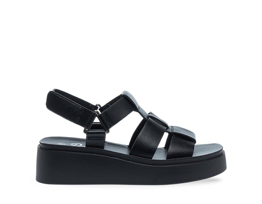 Μαύρα καθημερινά πέδιλα για άνετες εμφανίσεις. Κομψά και σταθερά. Διαθέτουν πολλά ελαστικά λουράκια και κλείνουν χαμηλά στον αστράγαλο.