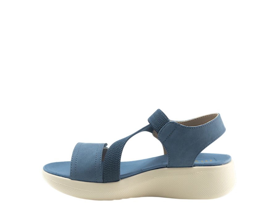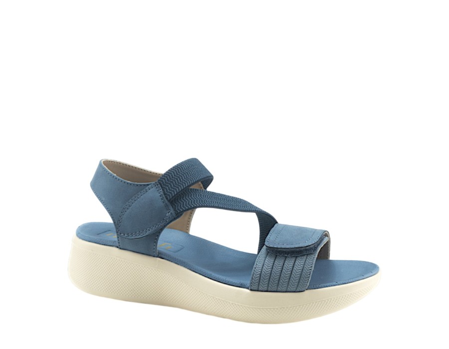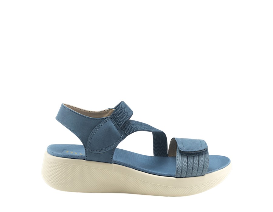 Γυναικείo πέδιλο της εταιρείας MY SOFT κατασκευασμένο από υψηλής ποιότητας συνθετικό δέρμα και ύφασμα. Με ελαφριά σόλα ύψους 4,5 εκατοστών σε γαλάζιο χρώμα.