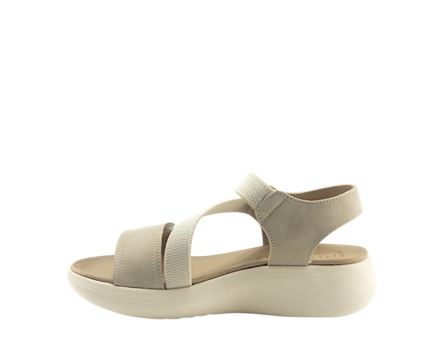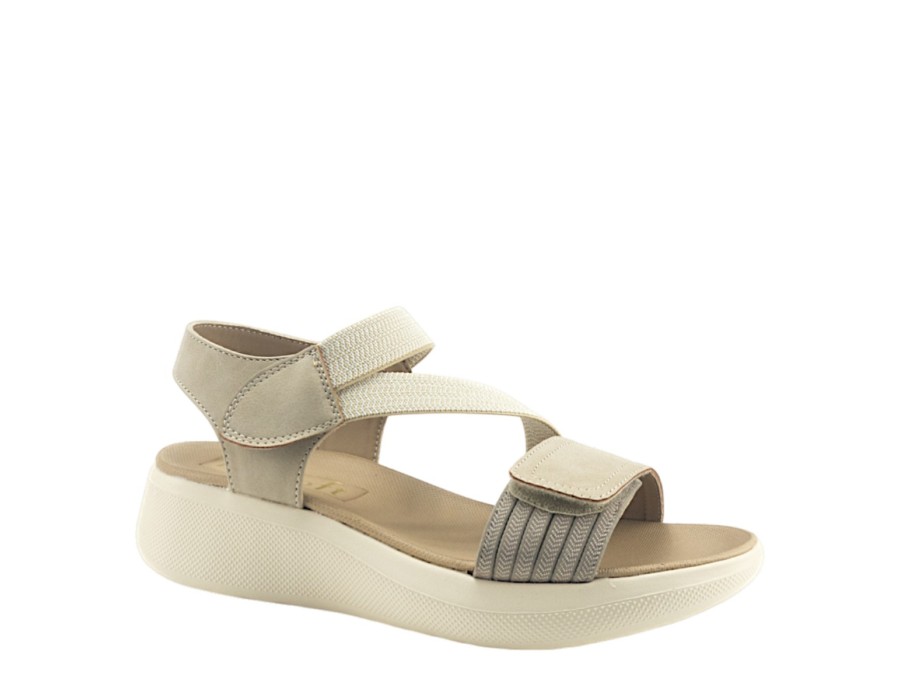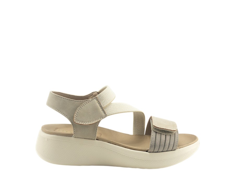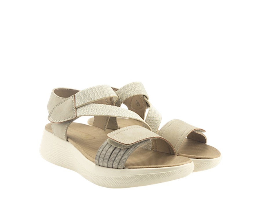 Γυναικείo πέδιλο της εταιρείας MY SOFT κατασκευασμένο από υψηλής ποιότητας συνθετικό δέρμα και ύφασμα. Με ελαφριά σόλα ύψους 4,5 εκατοστών σε μπεζ χρώμα.