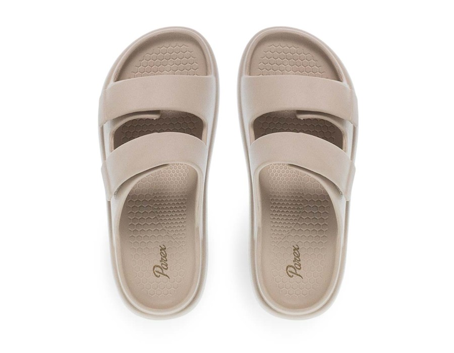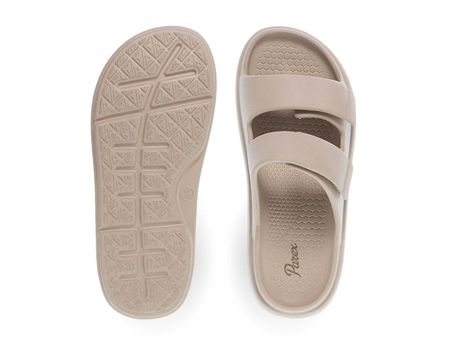 Παντόφλες σε μπεζ χρώμα από το Brand Parex. Με κομψά λουράκια στο επάνω μέρος. Έχουν μαλακό πάτο για να σας χαρίσουν άνεση σε κάθε χρήση.