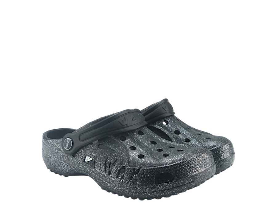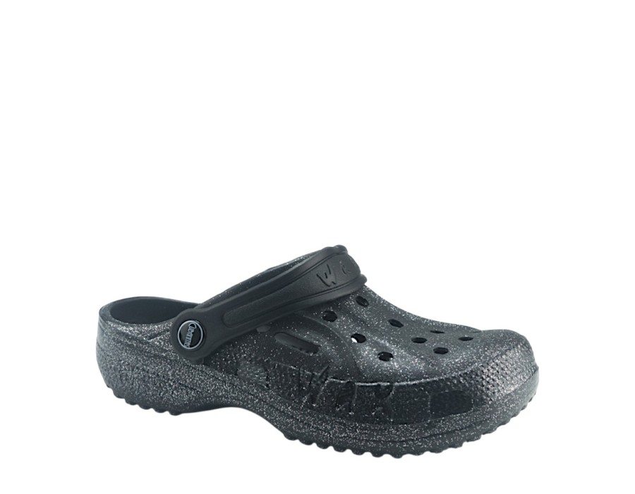 Σαμπό της εταιρίας Cubanitas σε μαύρο χρώμα με γκλίτερ, που μπορούν να φορεθούν με άνεση όλη την ημέρα, προσφέροντας σταθερότητα και στήριξη στην πολύωρη ορθοστασία.