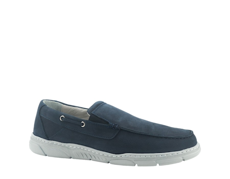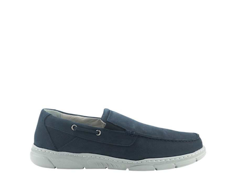 Ανδρικό μοκασίνι από δέρμα σε μπλε χρώμα υψηλής ποιότητας. Διαθέτει μαλακό πάτο και αντιολισθητική σόλα.