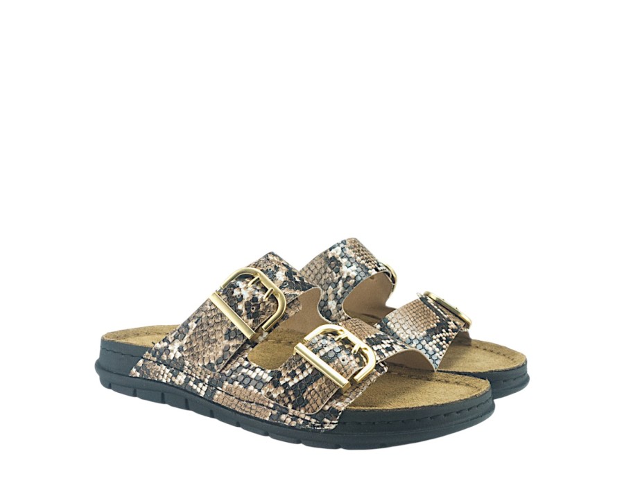 Γυναικεία σανδάλια της εταιρίας SUNNY SANDALS σε snake print. Είναι κατασκευασμένα από δέρμα ενώ προσαρμόζονται στη φόρμα του ποδιού παρέχοντας επιπλέον άνεση. Διαθέτουν ανατομικό σχεδιασμό για άνετο βάδισμα ακόμα και στις πιο απαιτητικές μέρες.