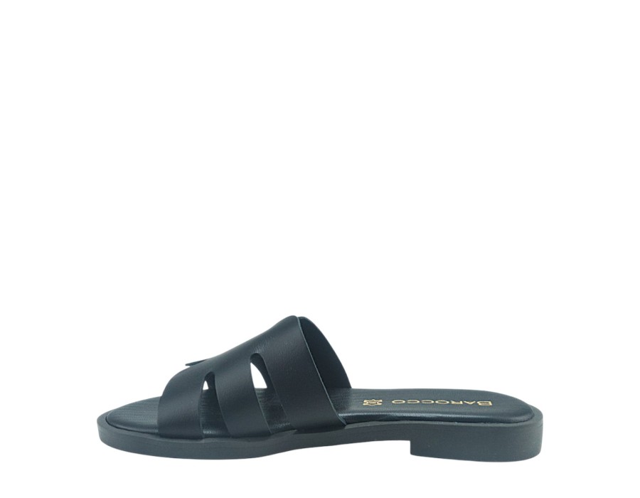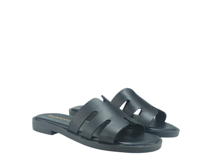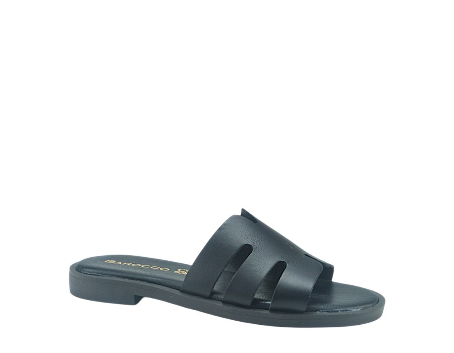 Γυναικείο σανδάλι σε μαύρο χρώμα, είναι κατασκευασμένο από δέρμα και συνθετικό δέρμα που το καθιστά πολύ άνετο και πολύ μαλακό. Το ύψος του τακουνιού είναι 2 εκ.