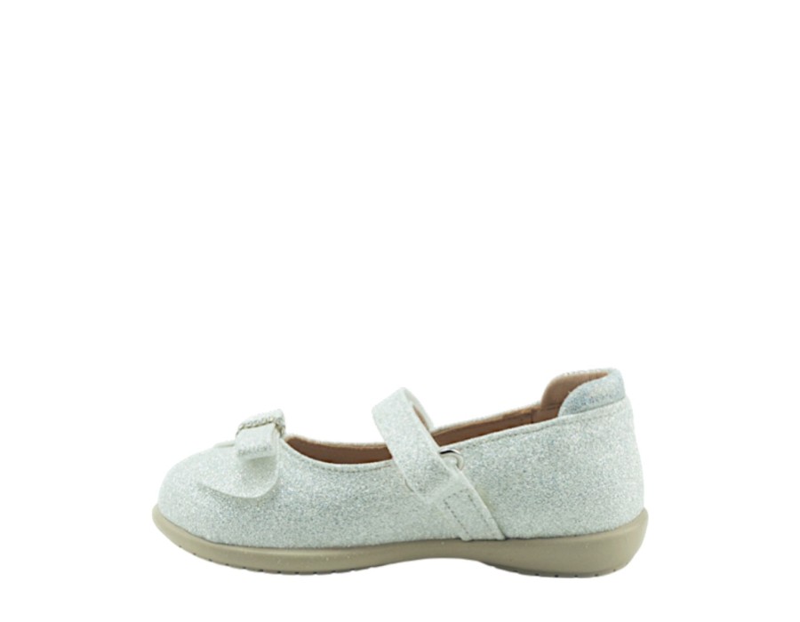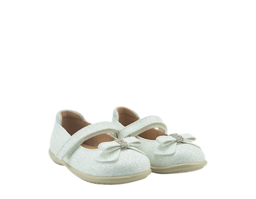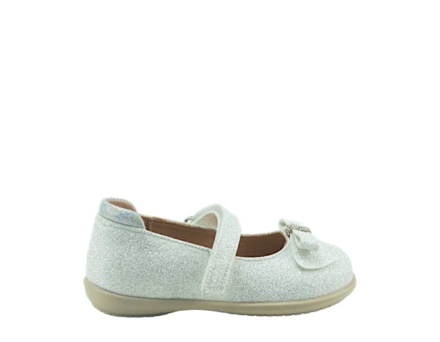 Παιδικές μπαλαρίνες σε χρώμα του πάγου, κατασκευασμένες από γνήσιο δέρμα σε συνδυασμό με συνθετικό δέρμα. Σε ένα χαριτωμένο σχέδιο, που θα χαρίσει στις μικρές σας, παραμυθένιες εμφανίσεις.