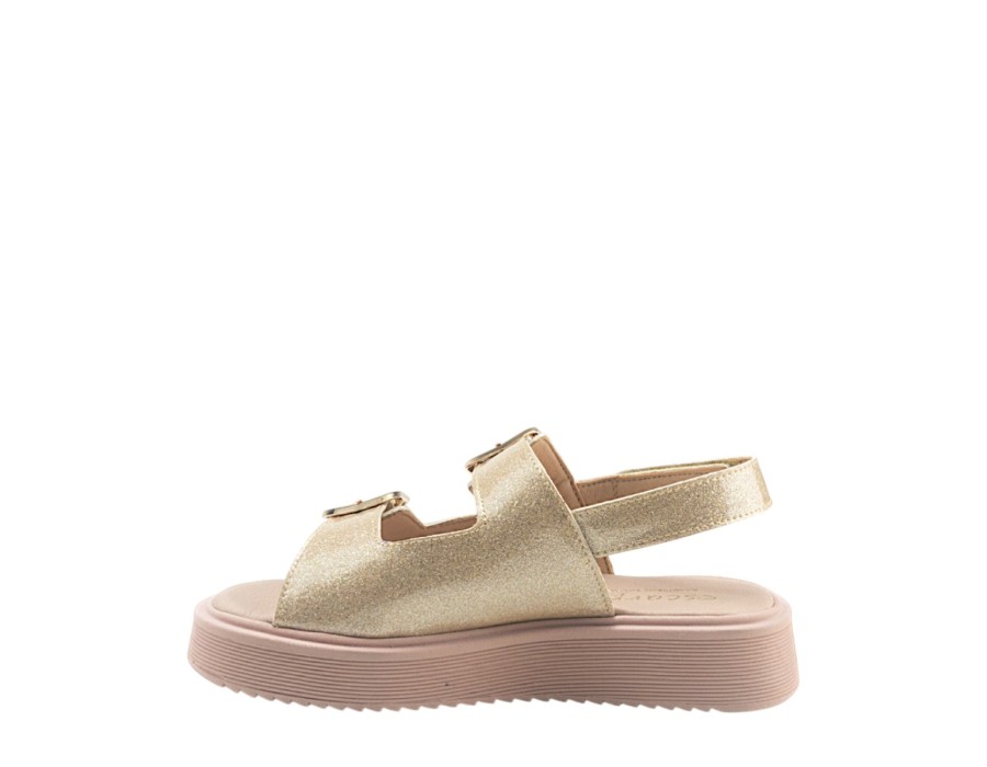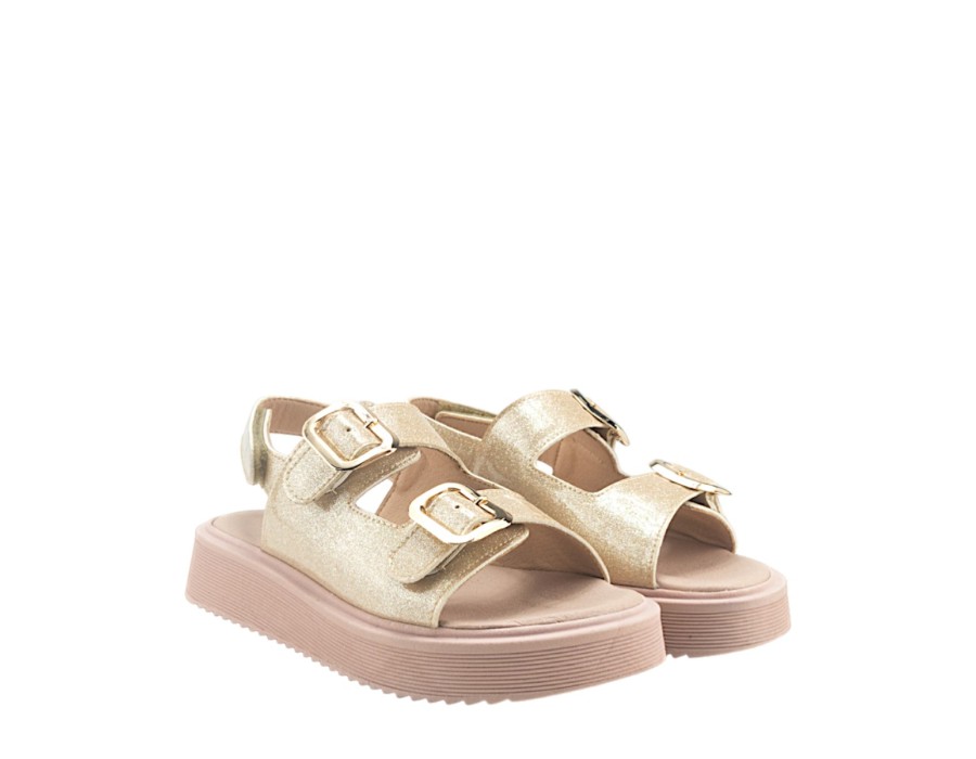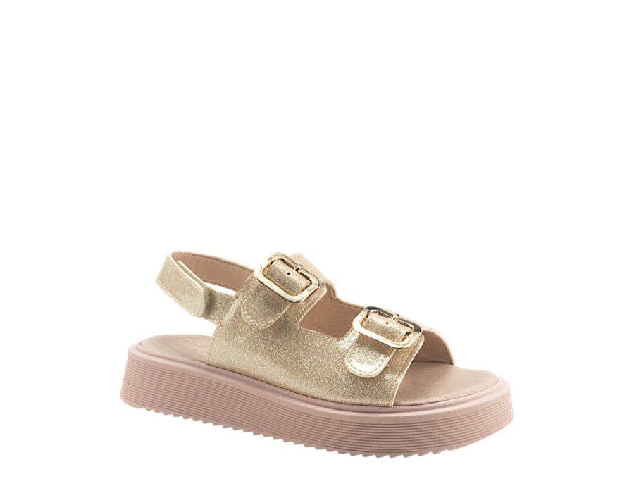Παιδικά πέδιλα κατασκευασμένα από συνθετικό δέρμα σε ένα σχέδιο με λαμπερή όψη, για εμφανίσεις με στυλ. Ιδανικό για κάθε δραστηριότητα των μικρών σας κοριτσιών. Διαθέτει κλείσιμο με ρυθμιζόμενο λουράκι, για σταθερά και άνετα βήματα.