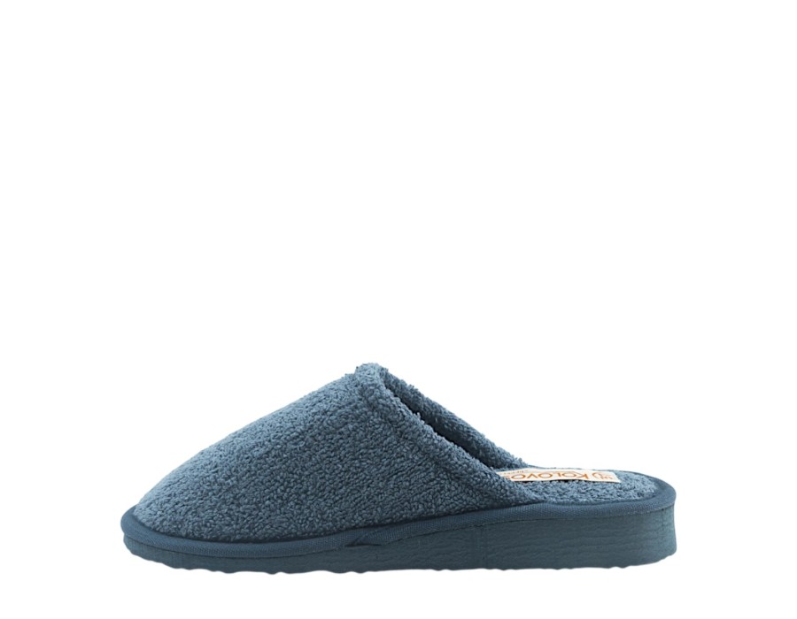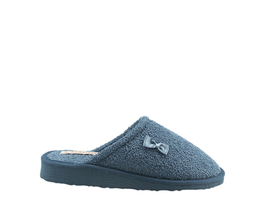 Γυναικείες άνετες παντόφλες σε μπλε χρώμα από την εταιρεία KOLOVOS. Διαθέτουν εξαιρετικά μαλακό ύφασμα και αντιολισθητική σόλα. Ιδανικές για να σας χαρίσουν άνεση και ξεκούραση στο σπίτι.